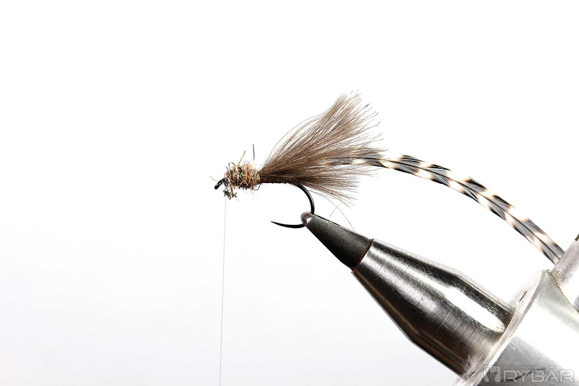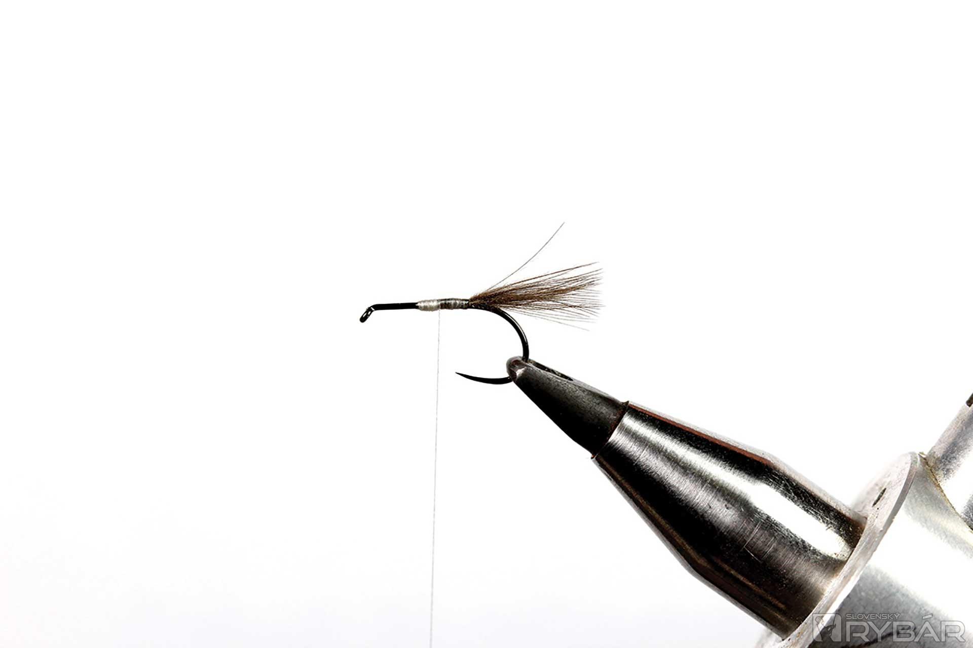 1. Háčik upneme do zveráčika a naviažeme CDC perie.