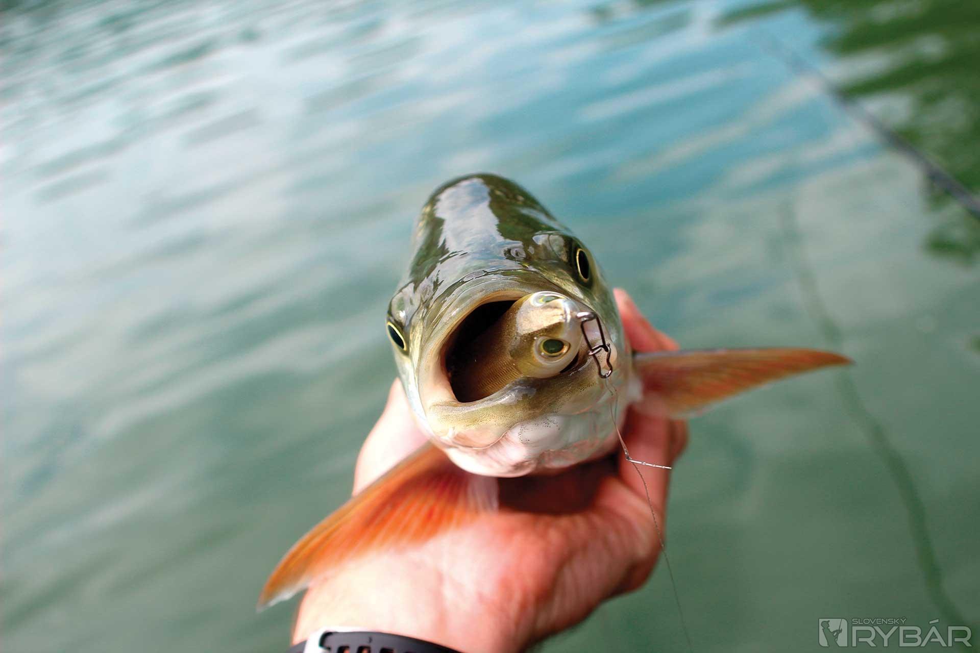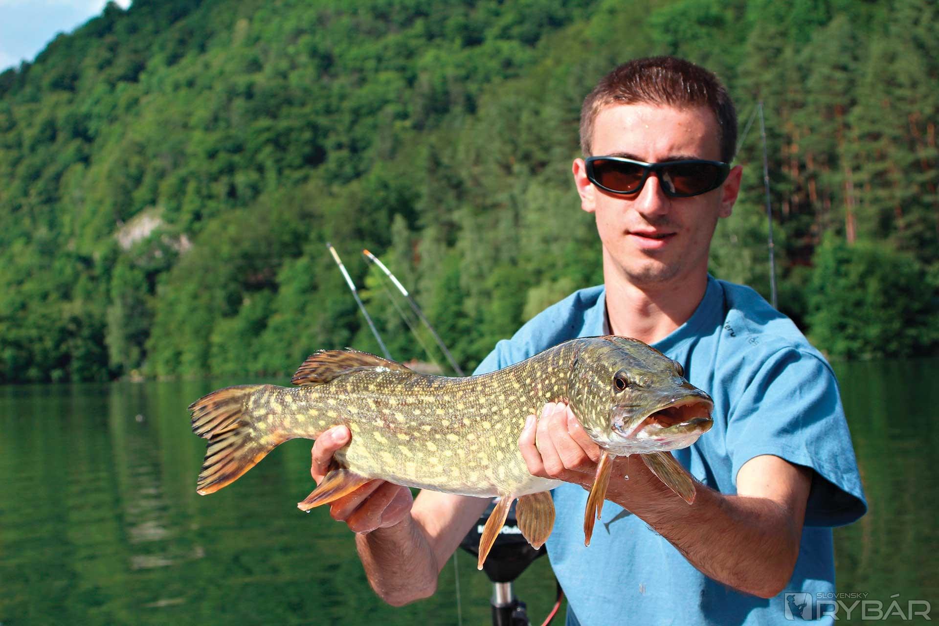 Nahadzujem už po tisíci raz ku vetvám, tento čerstvý napoly zatopený strom však ešte zdobia listy. Ja som si to ani nevšimol, ale Filip mi vraví, že sa pohli tie kriaky. V momente si všímam, že za povrchovkou visí nehybný tmavý tieň, silueta začína prenasledovať plaziaci sa kus plastu. Len čo zrýchlim tempo, rana ako z dela, 35-gramový prút imituje parabolu. S citom uťahujem brzdu navijaka, aby sa súboj zvrtol smerom na otvorenú vodu a neskončil predčasne v konároch. Až do chvíle, kým som dravca nedostal na dva metre od člna, som hlásil boleňa. Avšak krásne sfarbené úzke telo nám obom urobilo radosť. Konečne šťuka! Opatrne vyberám krásku z vody, na horúcom slnku iba ozaj rýchle foto a vraciam ju vode.