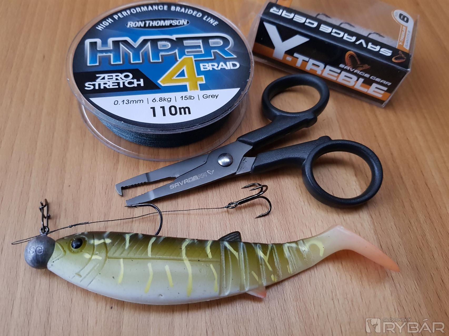 Nástrahy vo veľkostiach od cca 12 cm je podľa miestnych podmienok potrebné osadiť stingerom pre väčšiu efektivitu záseku dravej ryby. Ak mi situácia dovolí, tak však aj na nástrahách okolo 15 cm používam len ľahkú hlavičku s veľkým háčikom a nie je potrebné stinger dopĺňať, maximálne ľahko dovážim závažím. Na väčšie gumy sa však už stinger musí pripraviť. Na výrobu a osadenie je potrebných pár komponentov. Prakticky sú všetky na obrázku. Potrebujeme fluorokarbón alebo tvrdý monofilný silónový vlasec s priemerom od 0,70 mm a vyššie alebo oceľové lanko vo vyšších hmotnostných hodnotách (to preto, že samotný stinger je v spojoch viac namáhaný ako napríklad dlhé oceľové lanko pred nástrahou a musí hlavne odolať pevným čeľustiam).
