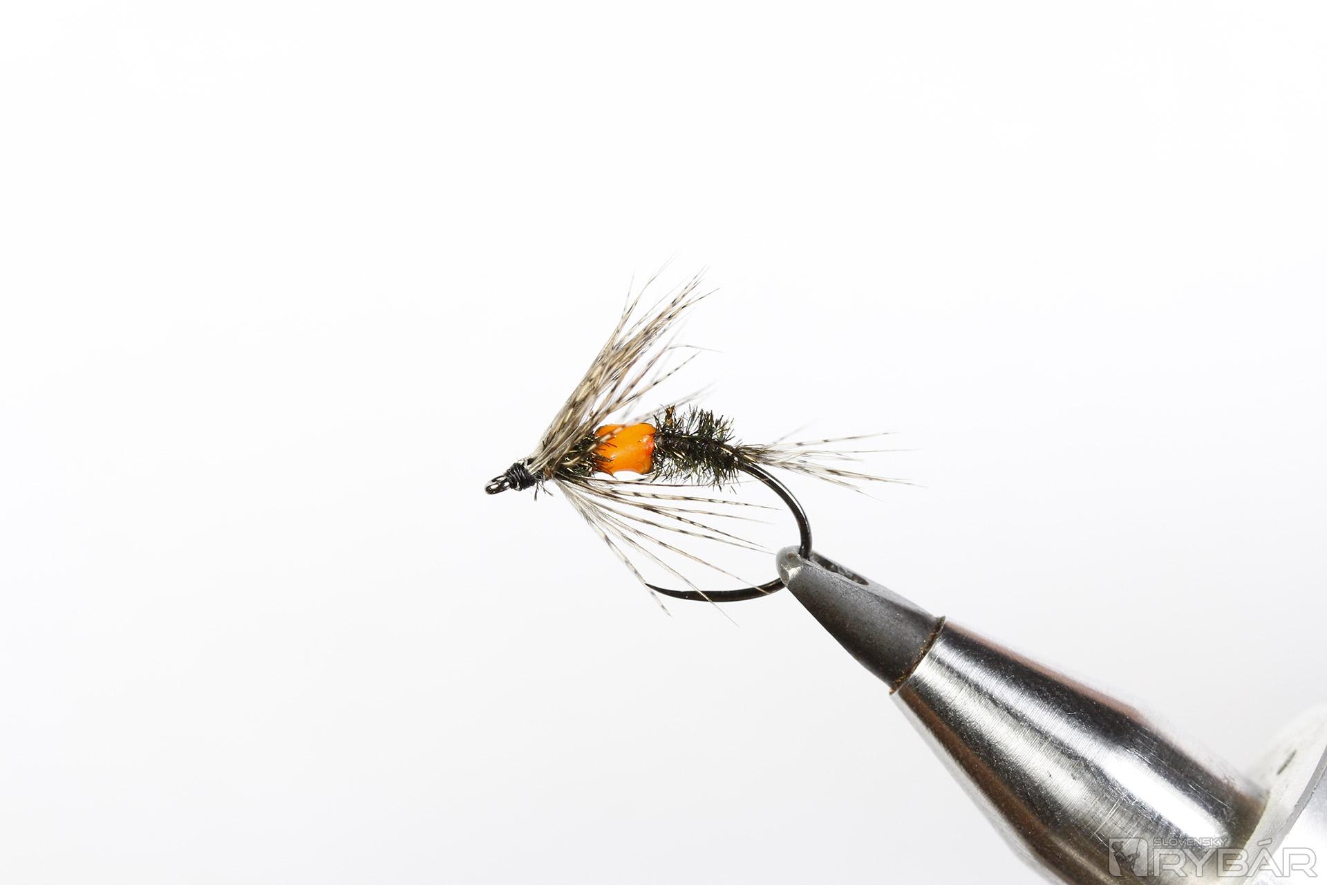 Muška výzorovo podobná legendárnej muške Royal Wulff. Táto verzia je viazaná ako mokrá, veľmi jemná a mäkká muška. Mušky typu „royal“ sú väčšinou viazané spôsobom, že stred telíčka je vyhotovený nejakou (zväčša červenou) niťou. Tento vzor je okrem previazania oranžovou niťou prelakovaný oranžovým UV lakom. Štety a nožičky sú vyhotovené z pierok jarabice, vo vode tak vytvára dojem pohybu a prirodzenosti. Skvelá mokrá muška, ktorá sa bude určite páčiť aj jalcom.