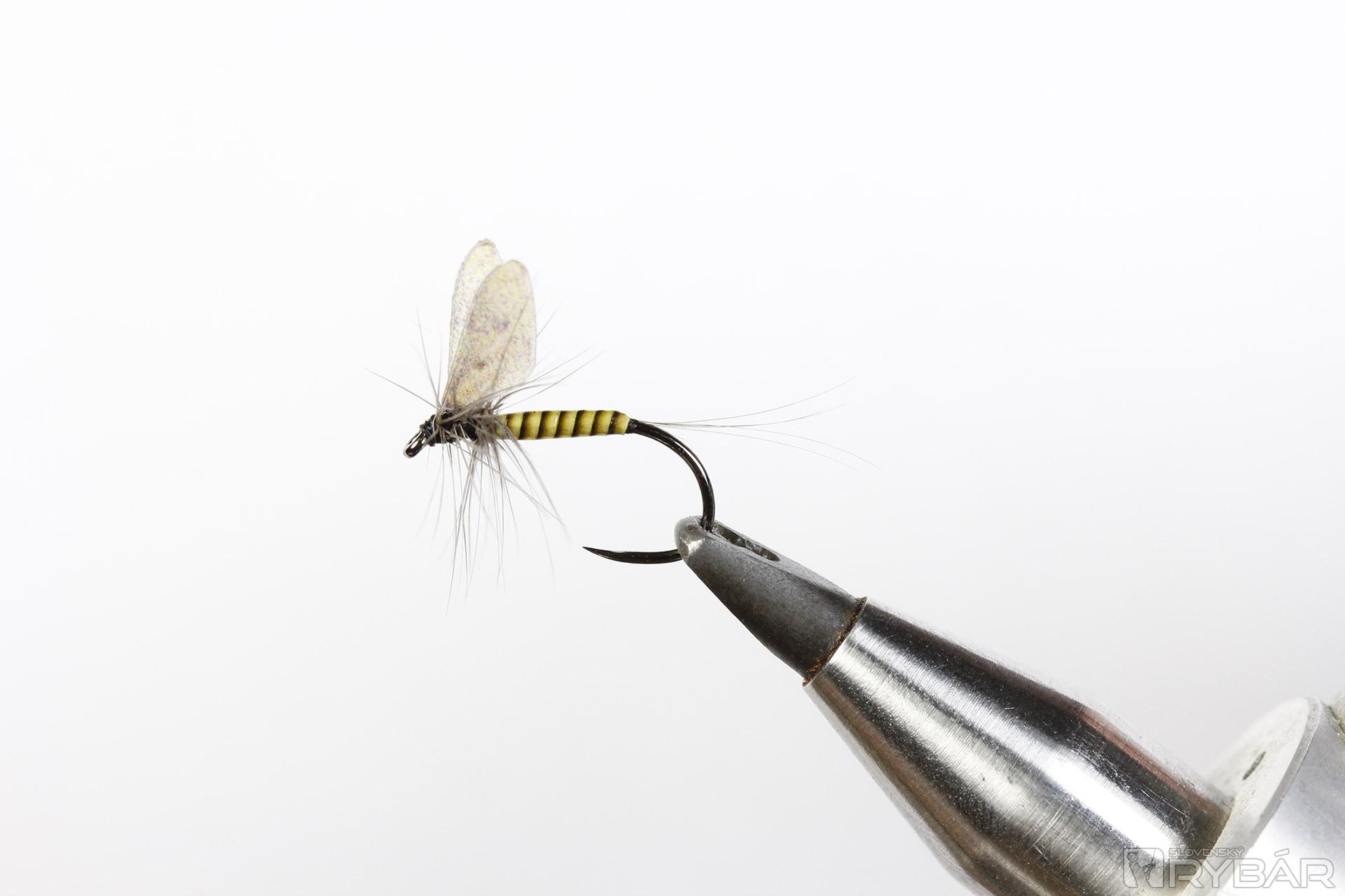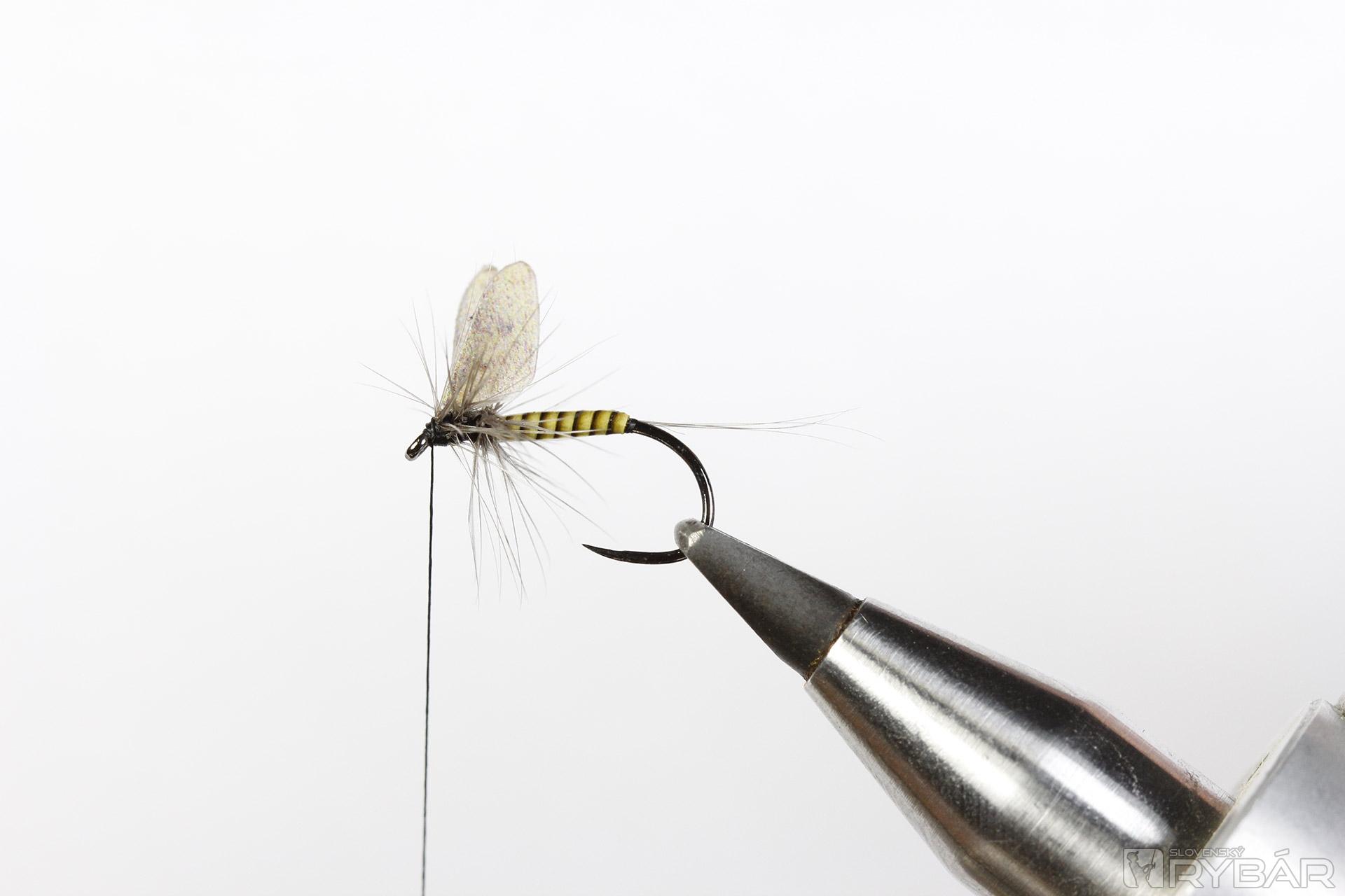 V zásade obyčajná muška, ale pridanú hodnotu má vďaka realistickým krídlam. Niekedy sú ryby veľmi prešpekulované a chňapnú iba po naozaj reálne vyzerajúcej nástrahe. Siluetu tejto mušky krásne podfarbia práve reálne krídla zhotovené z mäkkej, ale odolnej fólie. Lovíme klasicky na sucho, teda s jednou muškou na nadväzci.