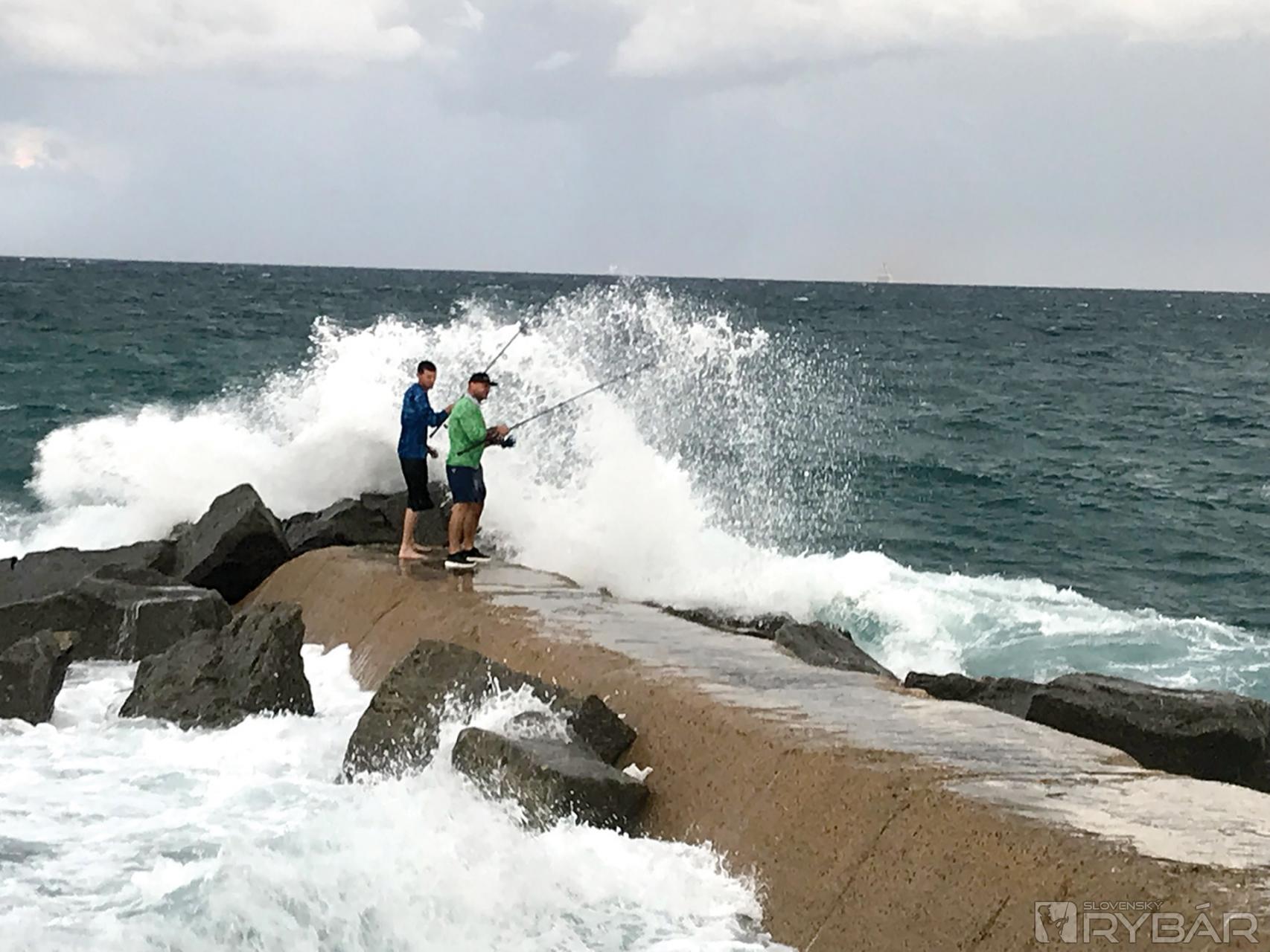 Teraz nastala nevýhoda toho, že pri takejto rybačke som tu sám. Treba zísť na kamene, vlastne balvany pokryté riasami, mušľami, do ktorých búšia vlny, vybrať rybu jedným hmatom za chvost a vyjsť odtiaľ naspäť… Ryba ešte dáva najavo svoju silu. Oslovím jedného z turistov, čo pribehli zvedavo ku mne: ochotne podrží prút, hoci to má prvýkrát v ruke, odfotí ma s úlovkom. Jacka si zoberiem, poslúži ako nástraha na žraloky alebo si ho zoberie sused. Nie je to veľmi obľúbená ryba na konzumáciu, ale dakto nerobí rozdiely a moje žraloky už dupľom nie – z tohto kusa bude tak na štyri vyvážky. Inak, tento druh je známy tým, že vysilením a stresom je s ním väčšinou amen.