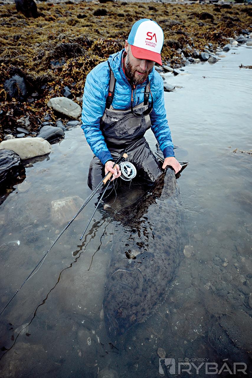 V ďalšom priebehu zdolávania sa cítim skôr ako miestny rybár loviaci na „dlhý“ vlasec než ako muškársky svetobežník. O pár minút mi prasknú nervy, keď naposledy vyťahujem rybu na hladinu. Tentoraz je to – buď, alebo! Buď ho dostaneme na loď, alebo vlasec praskne a halibut zmizne v hlbinách.