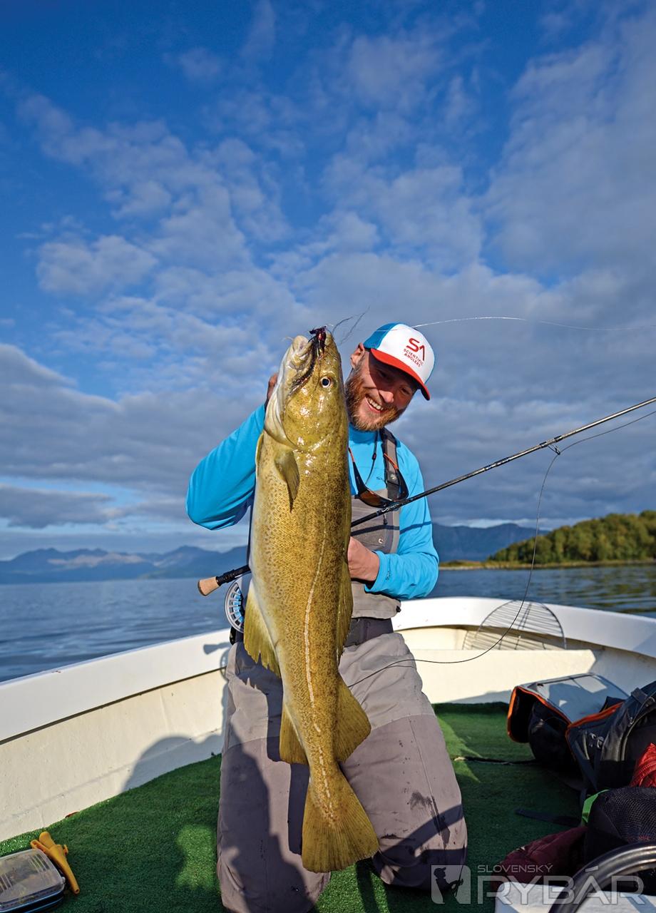 Moja misia je splnená, ale vyvrcholenie stále čaká. Neskôr večer sme späť pri známom prílivovom kanáli, necháme sa unášať klesajúcim prílivom a vrháme muchy do 3 až 5 metrovej vody. Potom sa v jednom momente Jonnyho muškárka ohne a ja sa otočím, aby som videl, čo sa deje. „Treska,“ zavrčí lakonicky v reakcii na lenivé trepanie hlavou a ako keby to bol nejaký príkaz, otočím sa, aby som urobil ďalší hod. V tom okamihu voda podo mnou exploduje a muškárska šnúra sa mi vytrhne z rúk! – Obrovský kráterový vír naráža na čln a cez jeho závoj vidím veľký tieň rýchlo miznúci v hlbinách. Šnúra sa napne a zrazu vzduch naplní mučivé vrčanie muškárskeho navijaka.