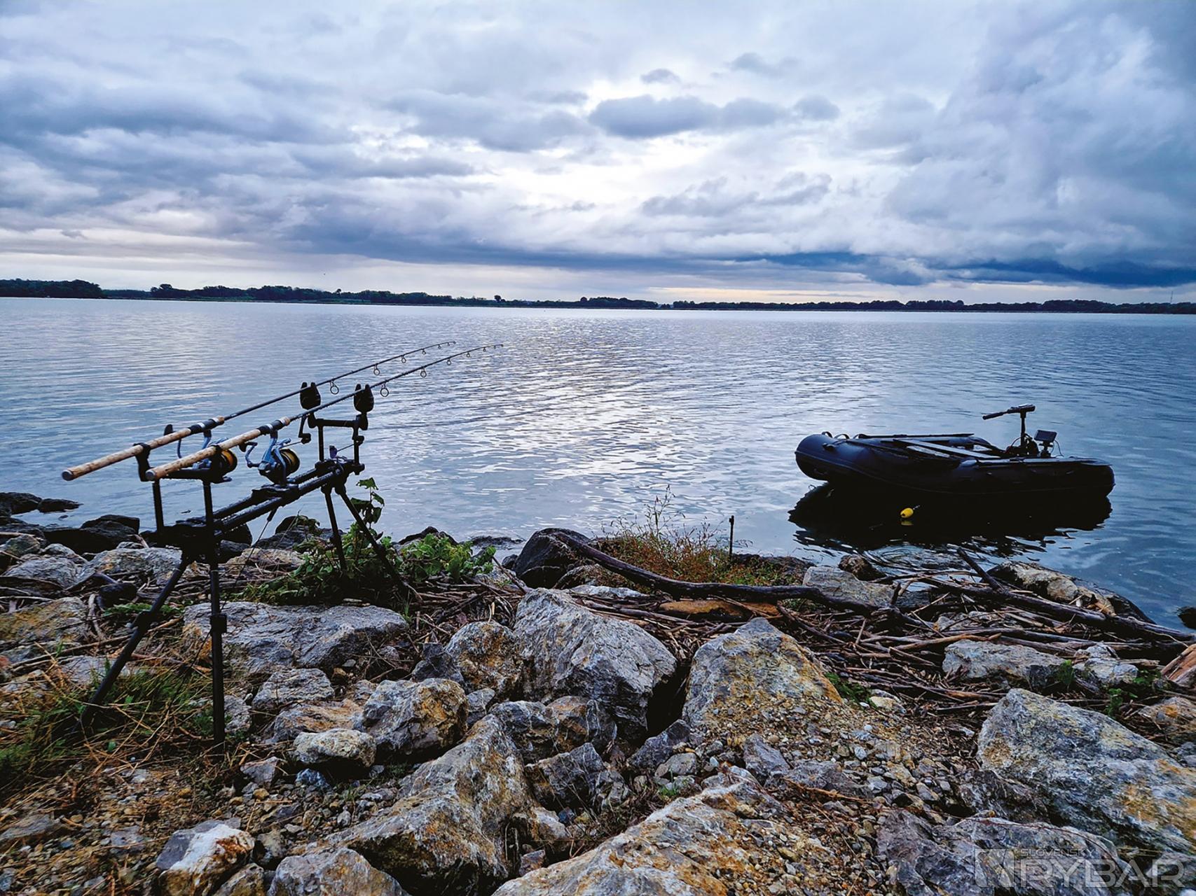 K brehom priehrady prichádzame pred obedom a ako prvé ideme pozrieť obsadenosť lovných miest. Bola nedeľa, a tak väčšina rybárov práve dnes odchádzala a naše vytypované miesto bolo voľné. Nestrácame čas a presúvame sa tam, následne ideme rozložiť všetky veci, ktorých máme čím ďalej tým viac. Po niekoľkých hodinách máme všetky veci rozložené a už treba len nachystať posledné veci a môžeme vyraziť na vodu hľadať lovné miesta. Hľadaniu lovných miest pripisujem veľký význam, preto na vode strávim viacej hodín, no napokon som našiel lovné miesta, s ktorými som spokojný. Už nám treba len nachystať montáže a vyviezť všetky prúty…