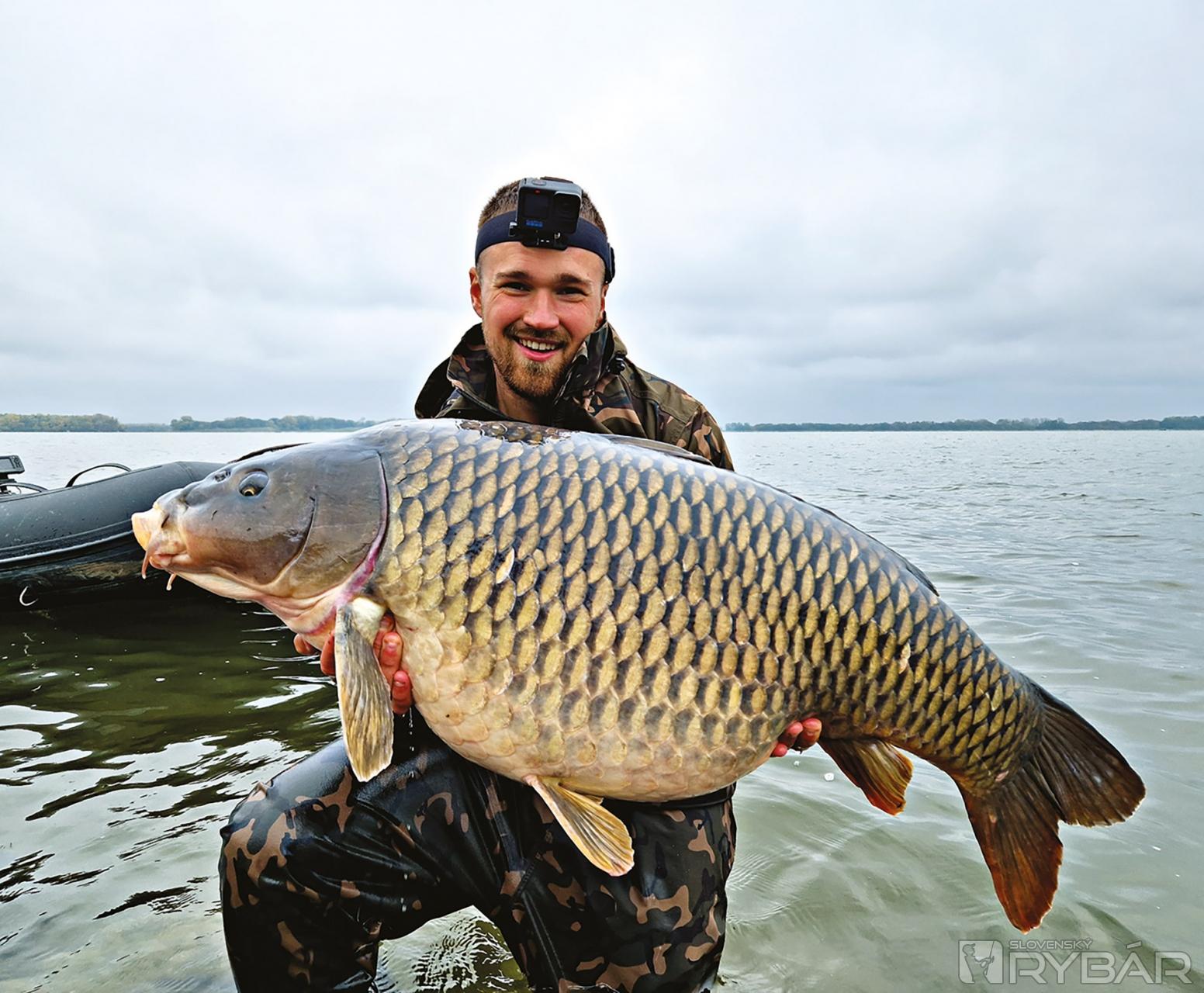Bol šiesty deň výpravy, keď na môj ľavý prút dostávam trikrát pípnutie signalizátora smerom nahor a swinger ostáva prilepený. Skáčem do prsačiek a Miška povoľuje cievku, lebo používame pletené šnúry na dlhé vyvážky. Po príchode na miesto zisťujem, že šnúra smeruje do tyčovej bójky, ktorú som mal takticky umiestnenú pred prekážkou. Bójku vyťahujem z vody a zospodu odmotávam šnúru, na ktorej pociťujem v ruke kontakt s rybou. Šnúru som úspešne odmotal a bójku pokladám naspäť na miesto, následne idem za rybou, ktorá sa držala kúsok vedľa v koryte. Len čo som sa dostal nad rybu, pocítil som tupý ťah a hneď mi bolo jasné, že to bude ďalšia pekná ryba. Po chvíli sa šupináč ukázal na pár sekúnd na hladine a mne sa doslova zastavil dych a roztriasli kolená… „Tohto nesmiem stratiť!“ – snažím sa opatrne zdolávať a kapra po peknom boji podoberám. Kapra som položil do člna na podložku a pri pohľade na rybu mi bolo jasné, že toto je ryba cez 25 kg. Na brehu kapra vážime a váha ukazuje 27,7 kg hmotnosti! Nádherná, vysoká ryba, ktorá nás nesmierne potešila. Spravíme zopár fotiek a ide naspäť do domova. Avšak to, čo nasledovalo ani nie po ôsmich hodinách, bolo neuveriteľné.