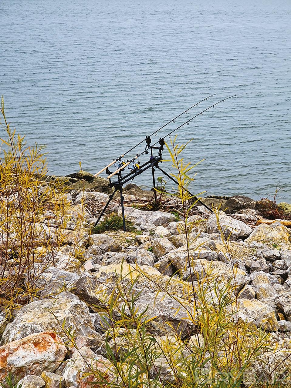 Na túto výpravu sme si zobrali z HNV rad boilies LB (losos) a SP (oliheň), ktoré sme si namiešali s boilies Praktik, ktoré je určené na väčšie zákrmy, a takto pripravený mix sme vopred zaliali Liquid Attractom. K boilies sme si zobrali tiež rôzne príchute pop‑up nástrah a dipované boilies – všetky tieto produkty sme používali od firmy MKCARP, ktorej dôverujem už dlhé roky a som s nimi spokojný. Zo začiatku výpravy sme chceli dosiahnuť prvý rýchly záber, a tak sme zvolili montáže na „panáčika“, a to dipované boilies priemeru 24 mm + 16 mm pop‑up nástraha v príchutiach mlieko, broskyňa, losos/rak, black pepper, čo sú naše obľúbené a kombinujeme ich rôzne podľa intuície. Keď sme vyviezli všetky prúty, bol už podvečer, a to bol čas ísť si vychutnať prvé jedlo dňa a čakať na záber.