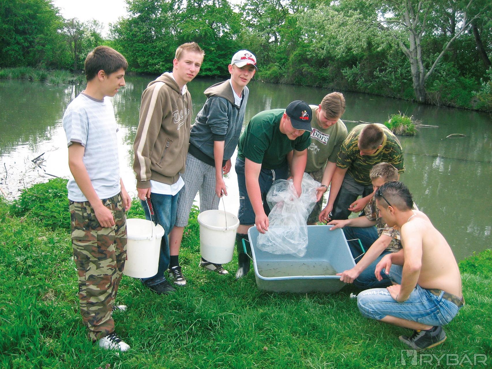 Pravidelné zarybňovanie rybárskych revírov patrí k základným úkonom pri rybárskom obhospodarovaní vôd. Jednotlivé druhy rýb na zarybnenie by sa mali starostlivo vybrať s prihliadnutím na konkrétne životné prostredie, kde chceme násady vysadiť. Pokiaľ sú vo vode vhodné podmienky pre prirodzený neres, nesmieme zabúdať ani na matečné - generačné ryby a na podporu ich neresu. Veď základnou úlohou hospodárenia na vodách je udržanie početnosti a druhovej pestrosti rýb v našich revíroch... Náš nový revír bol úplne vytrávený, a tak bolo jeho zarybnenie mimoriadne dôležité. Rozhodli sme sa zarybňovať prevažne vlastnými násadami, ktoré si odchovávame v školskej rybničnej sústave. Len ten si totiž skutočne dokáže vážiť vysadené ryby, kto ich sám odchová. A naši študenti veľmi dobre vedia, koľko práce, námahy a úsilia stojí vychovať násadového kapra, alebo šťuku...