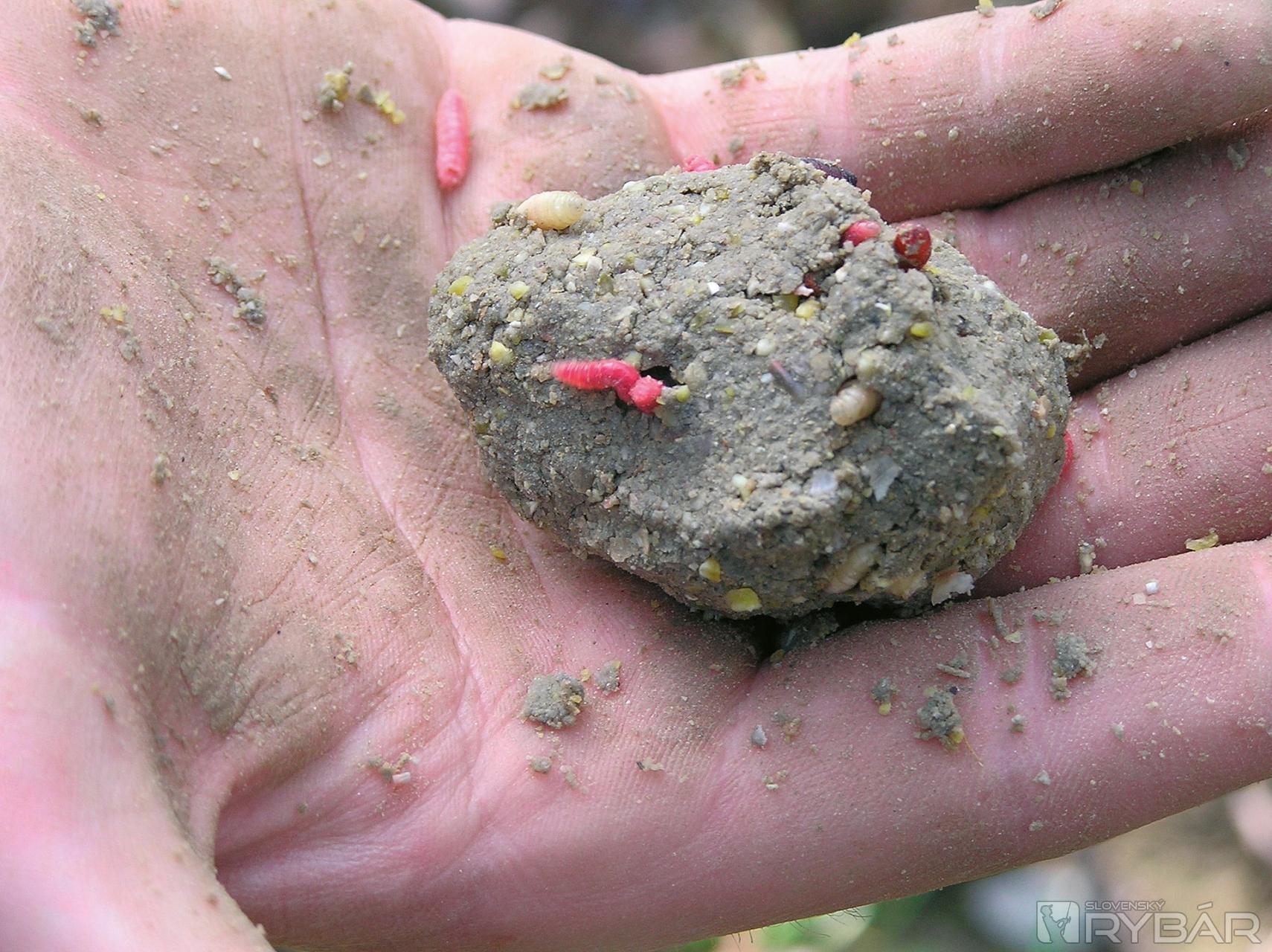 V rýchlosti domeriavam vodu tak, aby vodiaci brok kopíroval dno. Už len dovlhčiť krmivo, prihodiť doň hrsť rôznofarebných kostných červov a červených piniek, urobiť z neho pár guľôčok veľkosti orecha a je to.