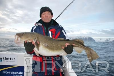 „Tak toto je zatiaľ moja najväčšia treska“ - hlási lovec ešte predtým, ako meter ukáže 116 cm. V tej chvíli však už Saša spúšťa do hlbín jigheada s gumovou rybou, ktorá sa má o päť minút stať jednohubkou pre najväčšiu rybu našej výpravy - tresku 120 cm. Hoci je Saša na rozdiel od Petra stúpencom „elektrík“ a jeho Shimano Dendo-Marou odvádza stopercentnú prácu, napriek tomu si po chvíľke musí oprieť prút o bok lode a dopriať chrbtu krátky odpočinok.