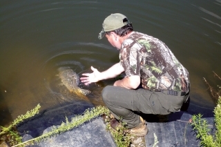 Bolo to v lete, zrána, slniečko už začalo viac prihrievať, keď som si všimol na jednom lovnom mieste rozruch. Osamotený rybár s ohnutým prútom „a la luk“, niečo gestikuloval smerom ku mne. Samozrejme, hneď mi bolo jasné, že je to neskúsený miestny borec a zrejme sa „pasuje“ s hmotnostne väčšou rybou.
