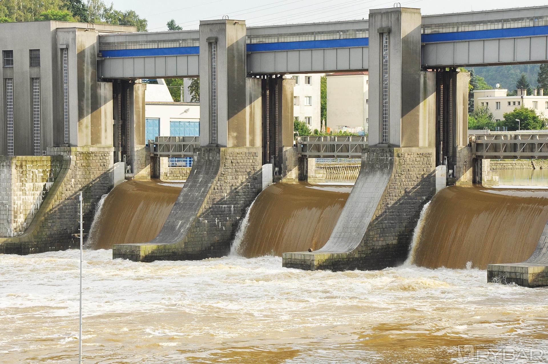 Rozhodujem sa pre prejazd k ďalšiemu splavu. Prepletám sa k nemu medzi kalužami a slepými ramenami. Obvykle tu býva pod splavom ostrovček a pri brehoch kosa, po ktorej sa dá prejsť suchou nohou až skoro do dravého prúdu splavu. Teraz je oboje pod vodu.