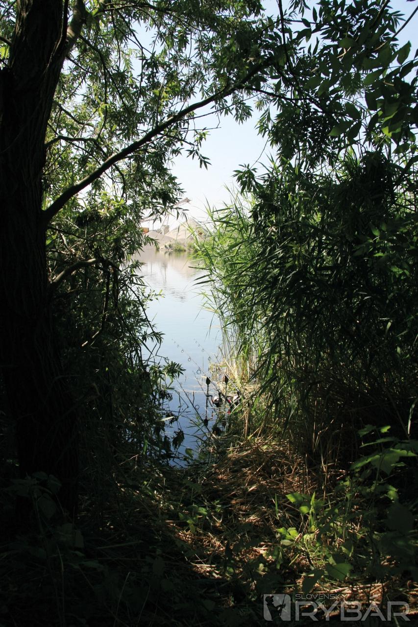 Kvôli návalu práce som sa k štrkovisku vrátil až v polovici júna. Ako naschvál bolo zasa bezvetrie a poriadne horúco. Ešteže som sa mohol skrývať v tieni, inak by som dostal brutálny úpal. Prehodnotil som umiestenie mojich prútov a pravý som jemným zhupnutím položil slabých 8 metrov od brehu do 3-metrovej hĺbky. Ľavý som nahodil na 30 metrov vzdialenú malú piesočnú plošinu do 3,5 m hĺbky.