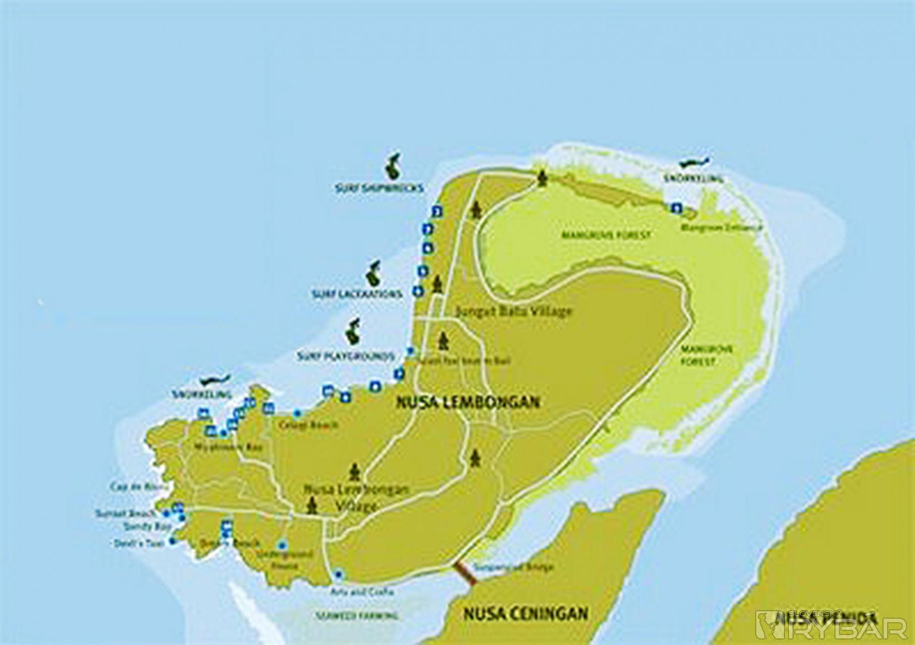 Nusa Lembongan je najbližší ostrov od Bali a aj najlepšie dostupný. Tento malý ostrov /4 km na dĺžku/ poznajú hlavne surfisti. V hlavnej surfarskej sezóne si radšej rezervujte ubytovanie. Sever a západ ostrova tvoria pláže s bielym pieskom. Východná časť je z mangrových lesov a bažín. Sto metrov od ostrova z južnej časti je ďalší ostrov Nusa Ceningan. Ostrovy sú spojené mostom.