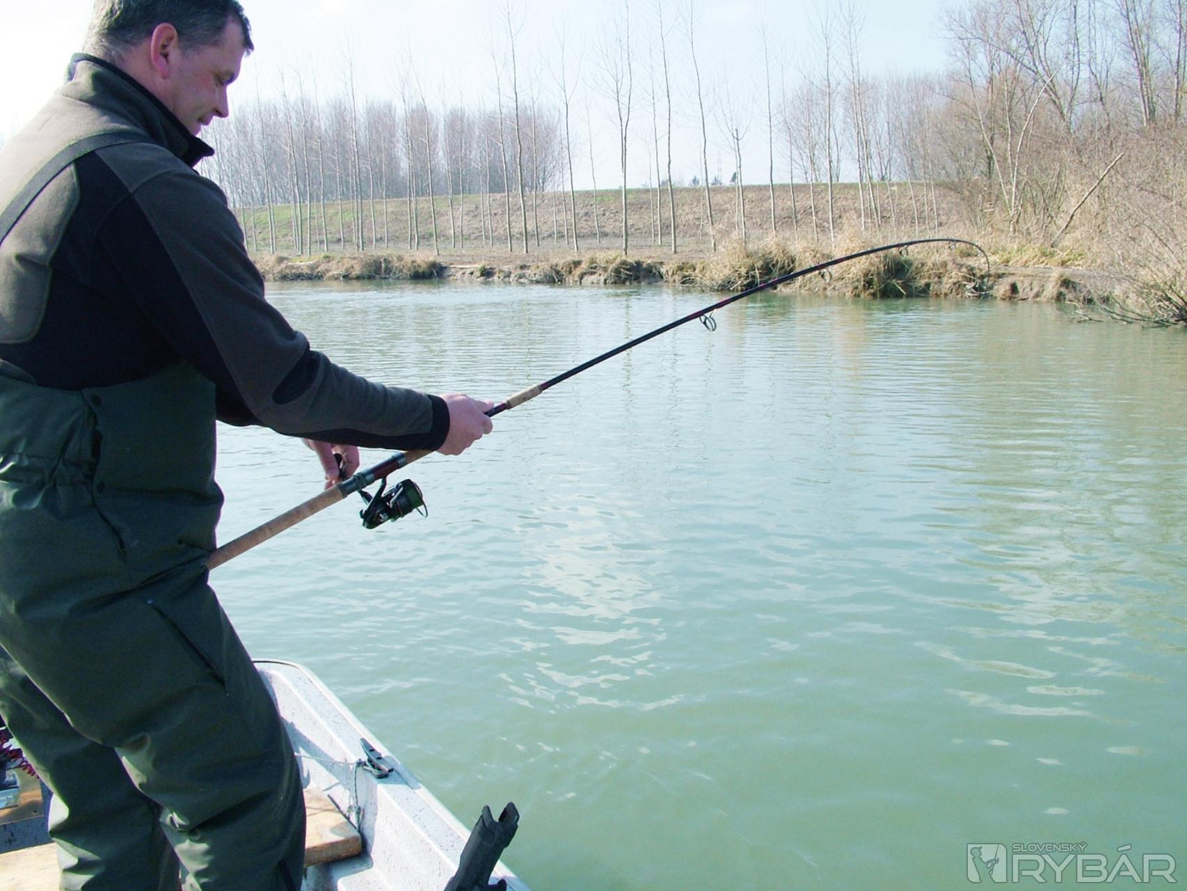 Vôbec nevadí, že vďaka silnému toku môžem svoju zostavu ďalej zaťažovať, aspoň vidím a cítim tak všetky jej zachvenia. Sumca som pripumpoval pod čln pomerne rýchlo. Tlačí sa do hĺbky, ale rázne ho odlepujem odo dna. Rybu dokážem viesť veľmi upokojujúco, robí iba to, čo chcem. Zapumpujem, naviniem, zapumpujem, naviniem a prekvapený sumec sa už „hadí“ podo mnou.