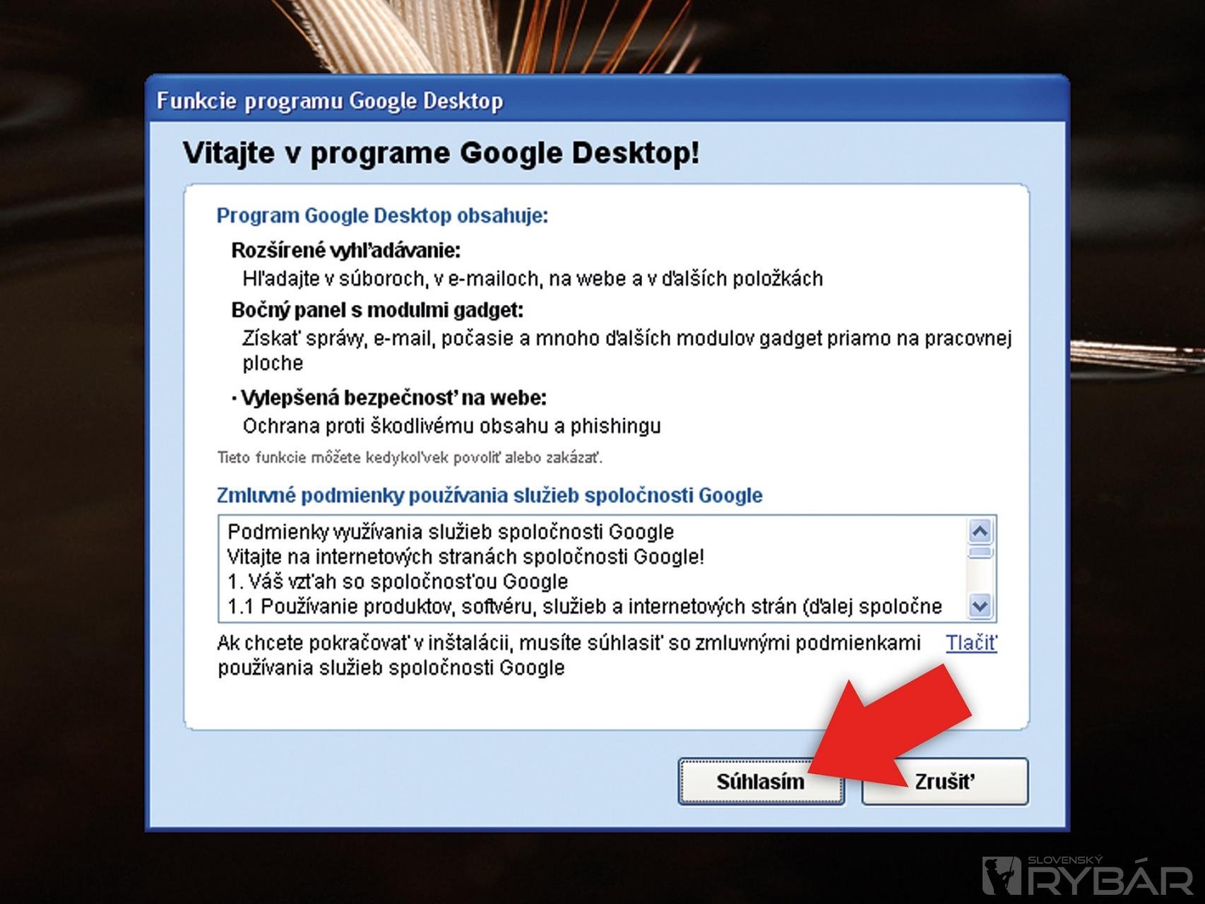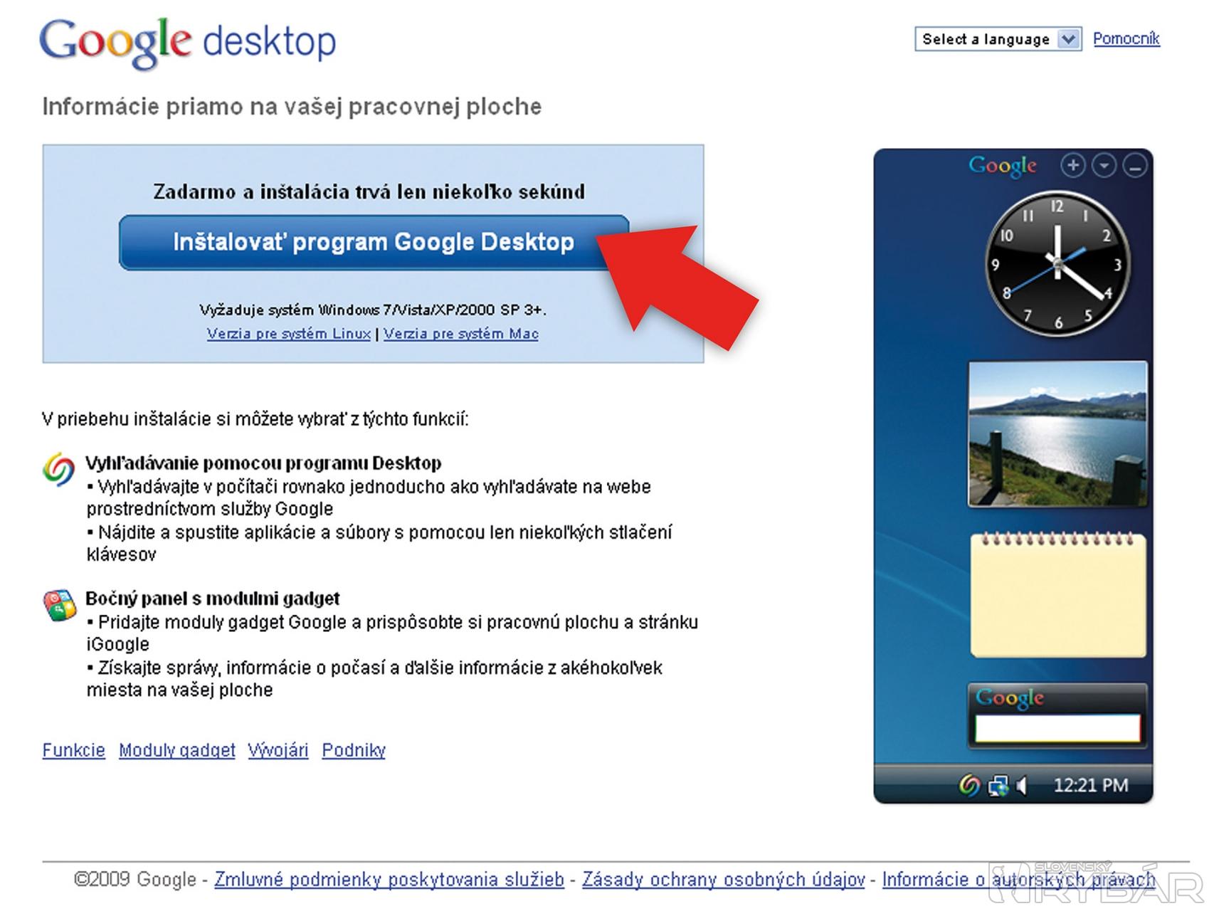 Z adresy www.desktop.google.com si stiahnite program Google Desktop.