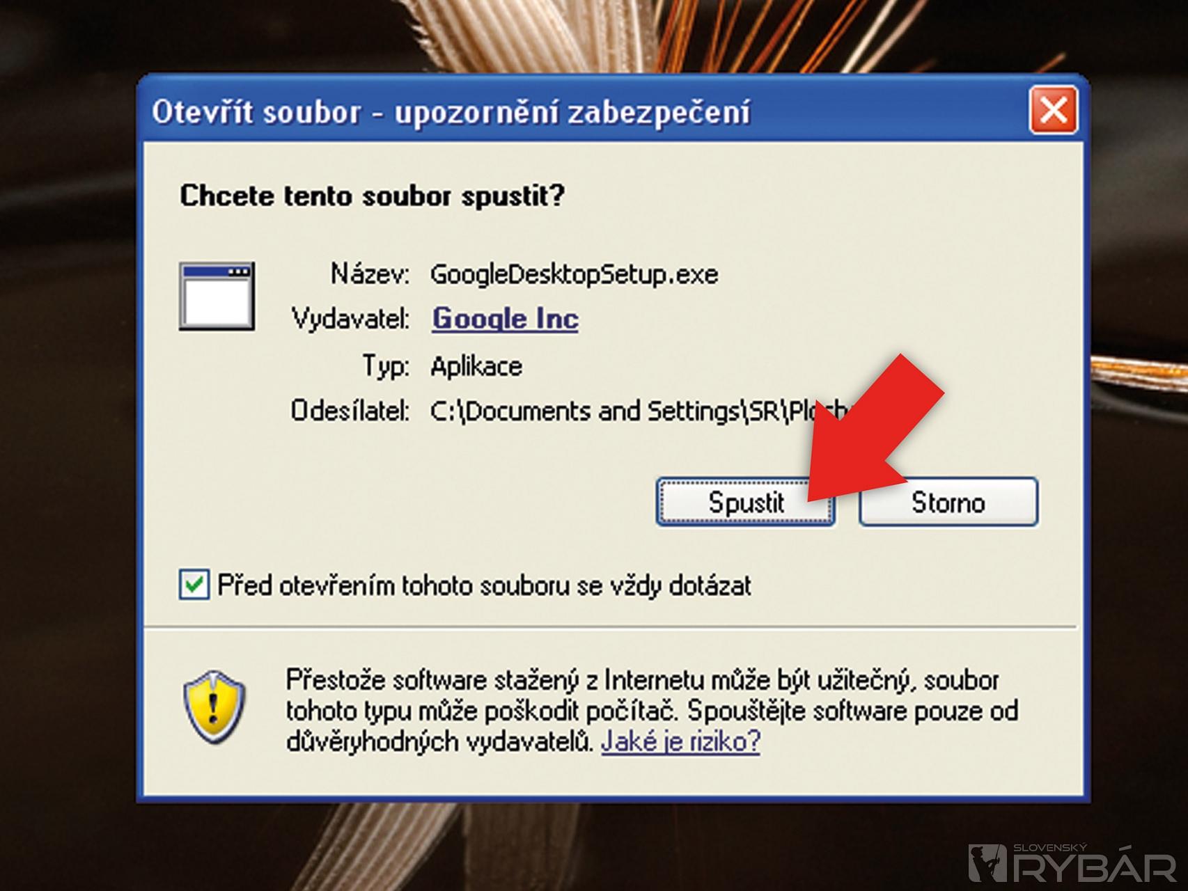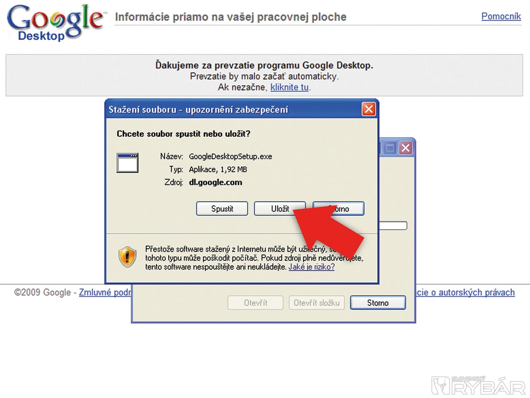 Keď je súbor prevzatý, kliknite na Google Desktop a stlačte „Spustiť súbor“.