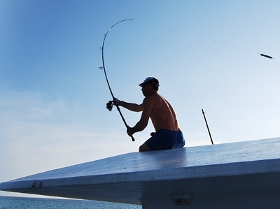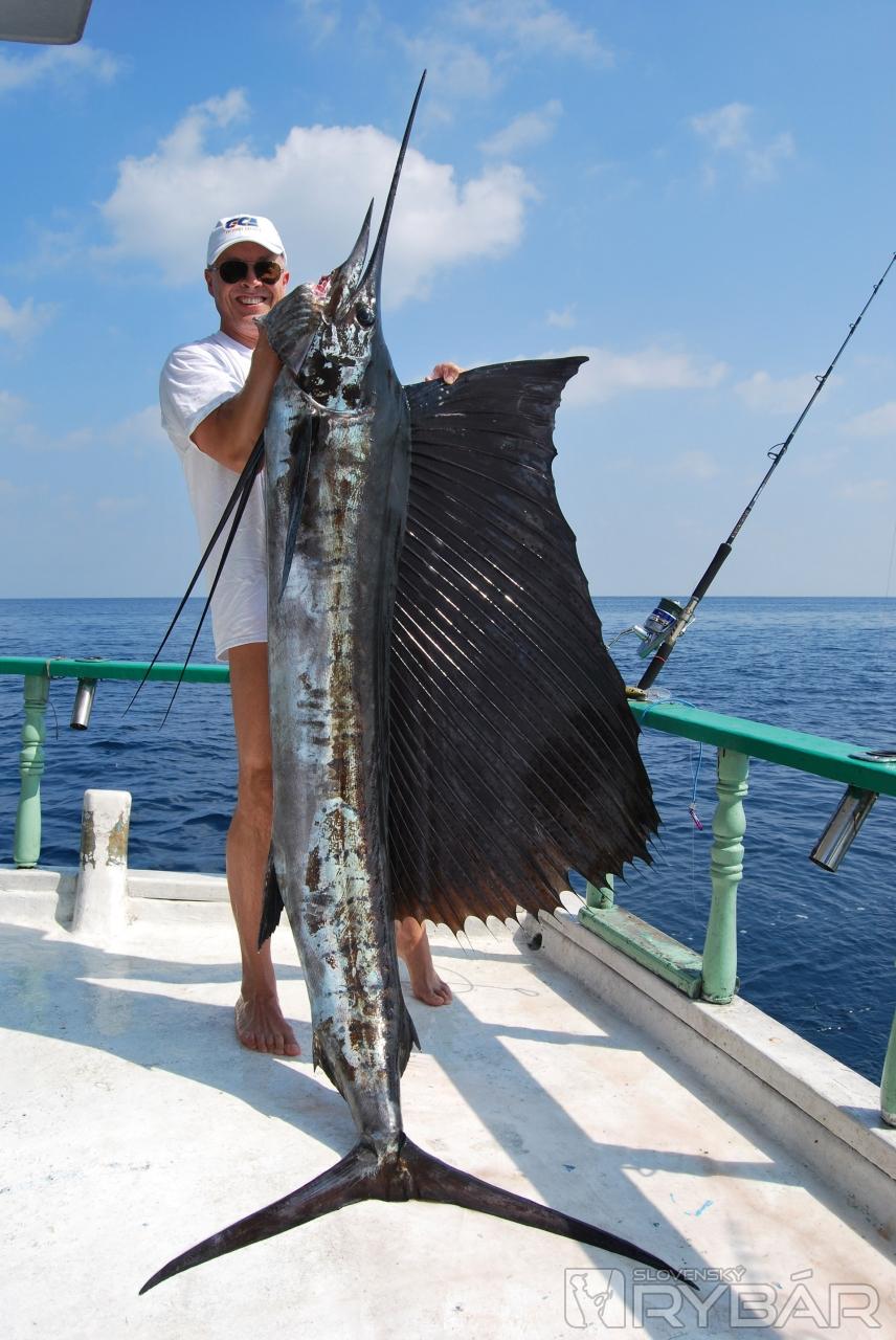 Po bežnom trhnutí prúta počas plavby sa chytená ryba z ničoho nič objavila vo výskoku nad hladinou. Skoro trojmetrové telo, ktoré sa vnorilo späť do oceánu, nenechávalo nikoho na pochybách, že už je to tu. Juraj zvieral udicu v rukách a my sme už hľadeli raz na skákajúceho plachetníka a potom na cievku navijaka, z ktorého mizli metre šnúry šialenou rýchlosťou. Kapitán Ibrahim pochopil, že si sami neporadíme a okamžite skrútil loď v smere úniku ryby. Motor zaúpel a z výfuku vyletel kúdeľ dymu ako z horiaceho senníka na východnom Slovensku.