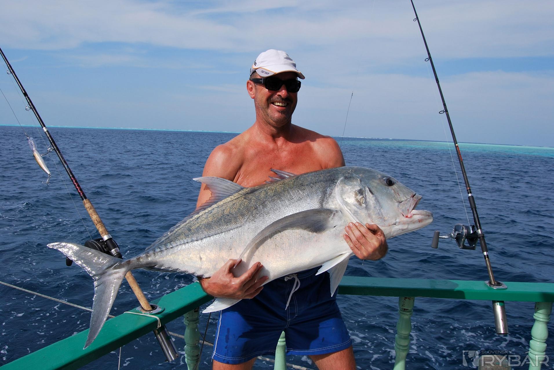 Plávali sme úžinou medzi dvomi koralovými útesmi, kde sa hĺbka zmenšila natoľko, že sme vizuálne zaznamenávali dno. Jankova udica, ťažká trolingová medveďobíjka odrazu ožila. V prvom momente po Johnyho záseku nás všetkých napadlo, že to bude pravdepodobne zachytenie vobleru o koral. Nástraha zostala uväznená niekde pri dne a šnúra sa odvíjala iba rýchlosťou spomaľujúcej lode. „Visím“- konštatoval Janči a vôbec tým nemal na mysli sexuálnu narážku...