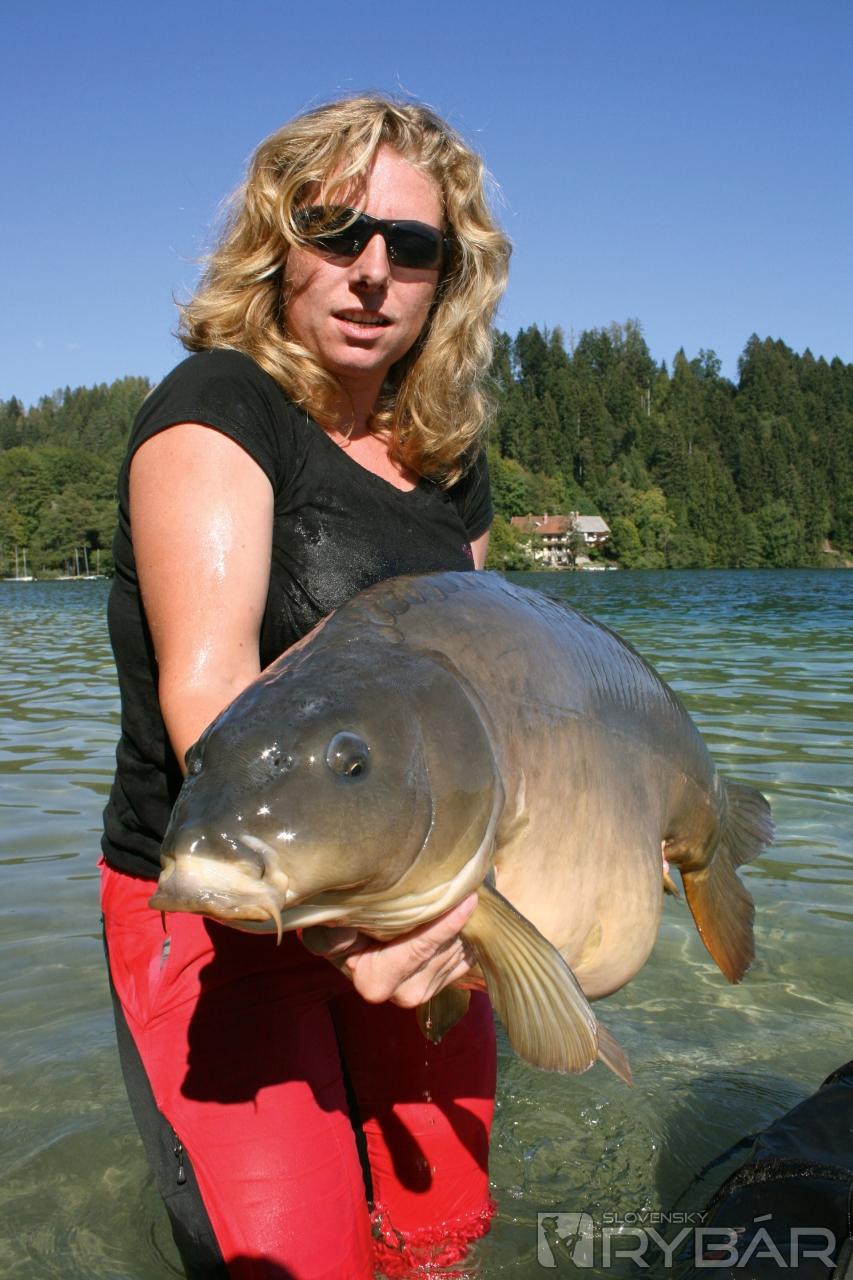 V tú ranu sa ozýva pravý prút. Podľa tradície je prvý záber po jej príchode jej, potom sa striedame. V minulých dňoch trafila len jednu 11-ku. Dnes je však situácia úplne iná. Kapor síce nebojuje nijako divoko, ale je vidieť, že to nebude bábätko. Nejakých 15 minút sa preťahuje s kapríkom, ale pri pohľade do podberáka je nám jasné, že to je úplne iná kategória.