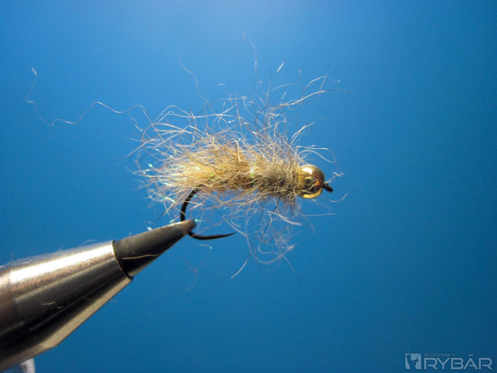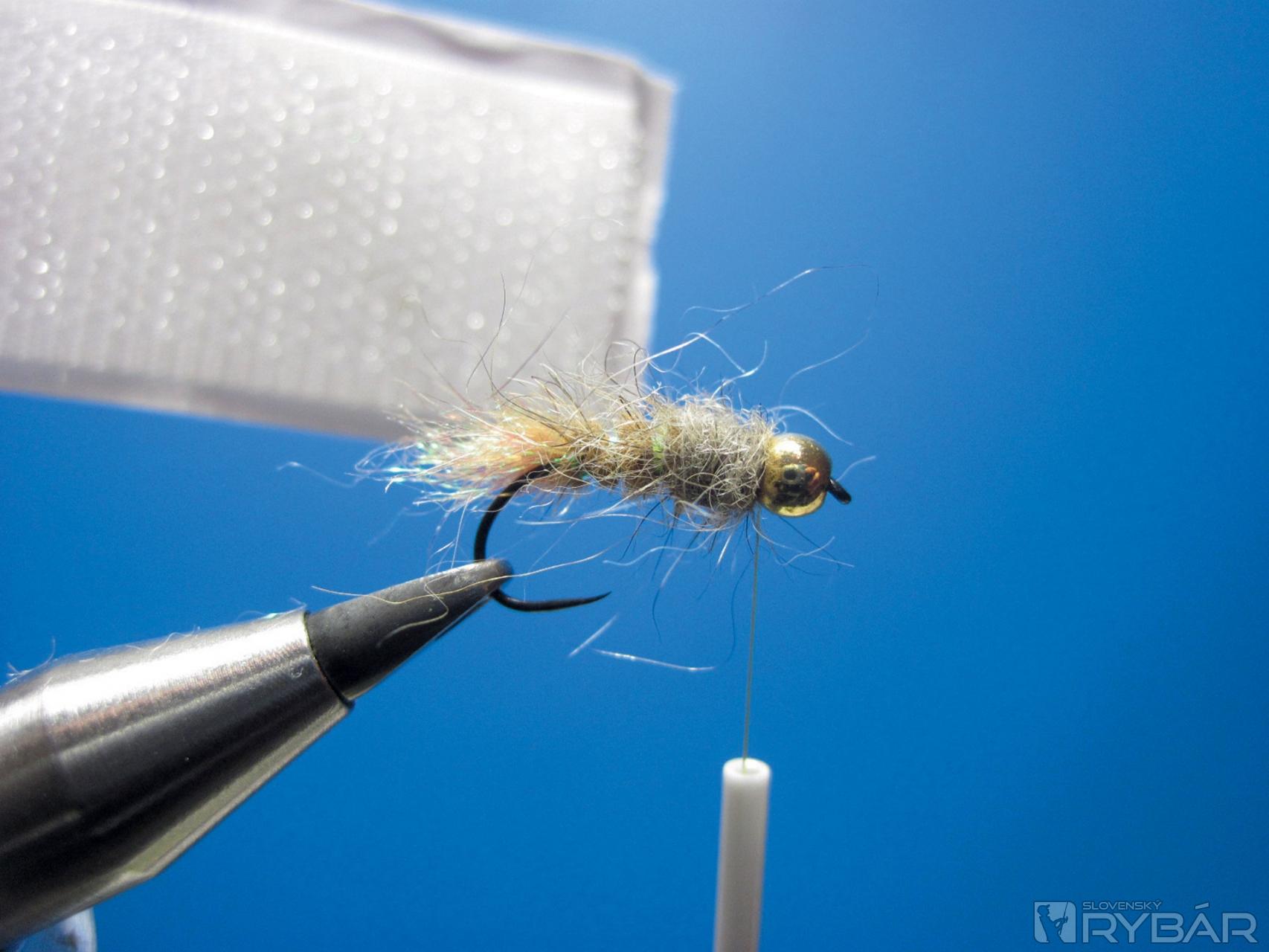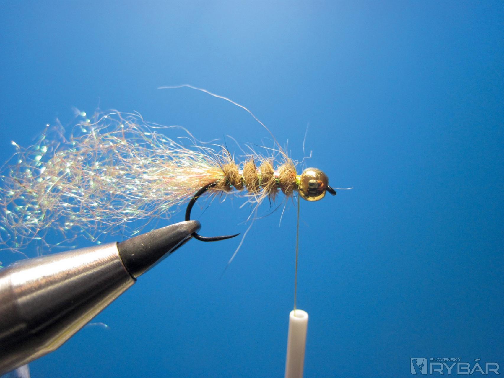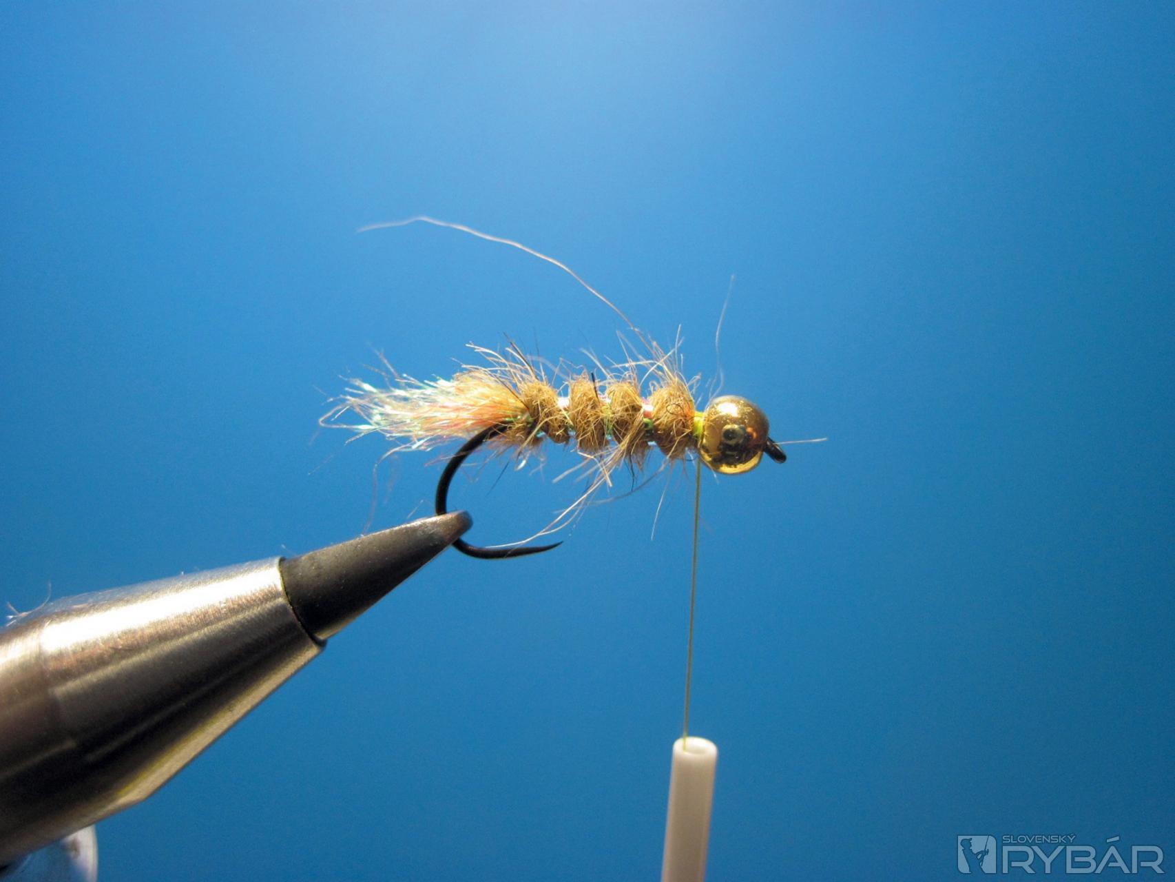 Mušku zakončíme strateným uzlom a vyčešeme dôkladne suchým zipsom, až muška nadobudne na objeme.