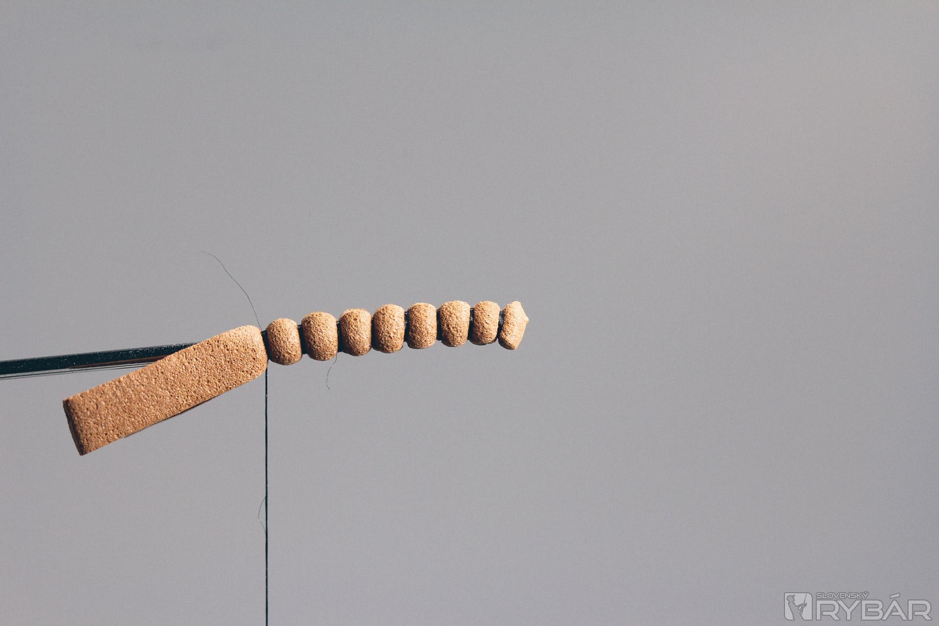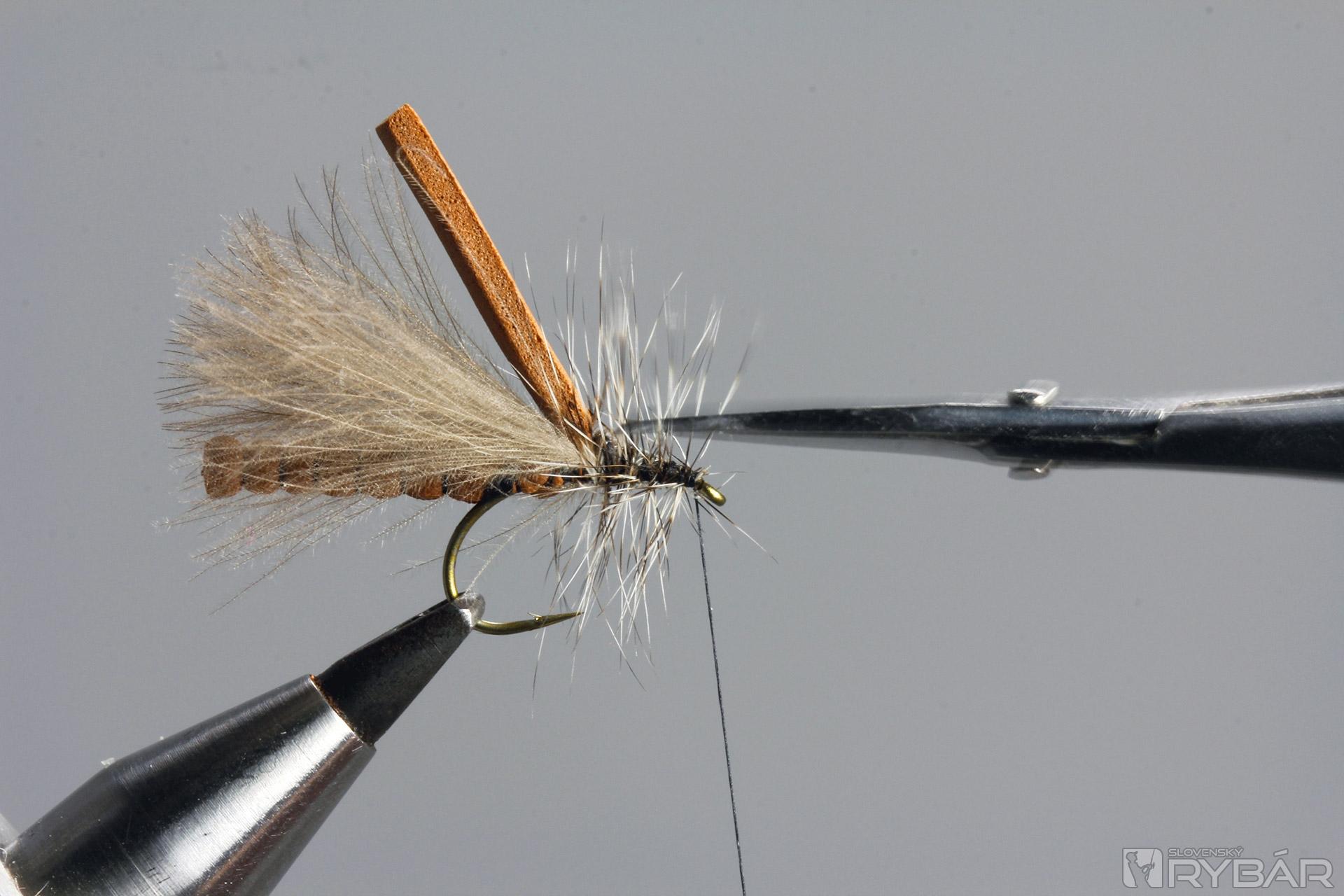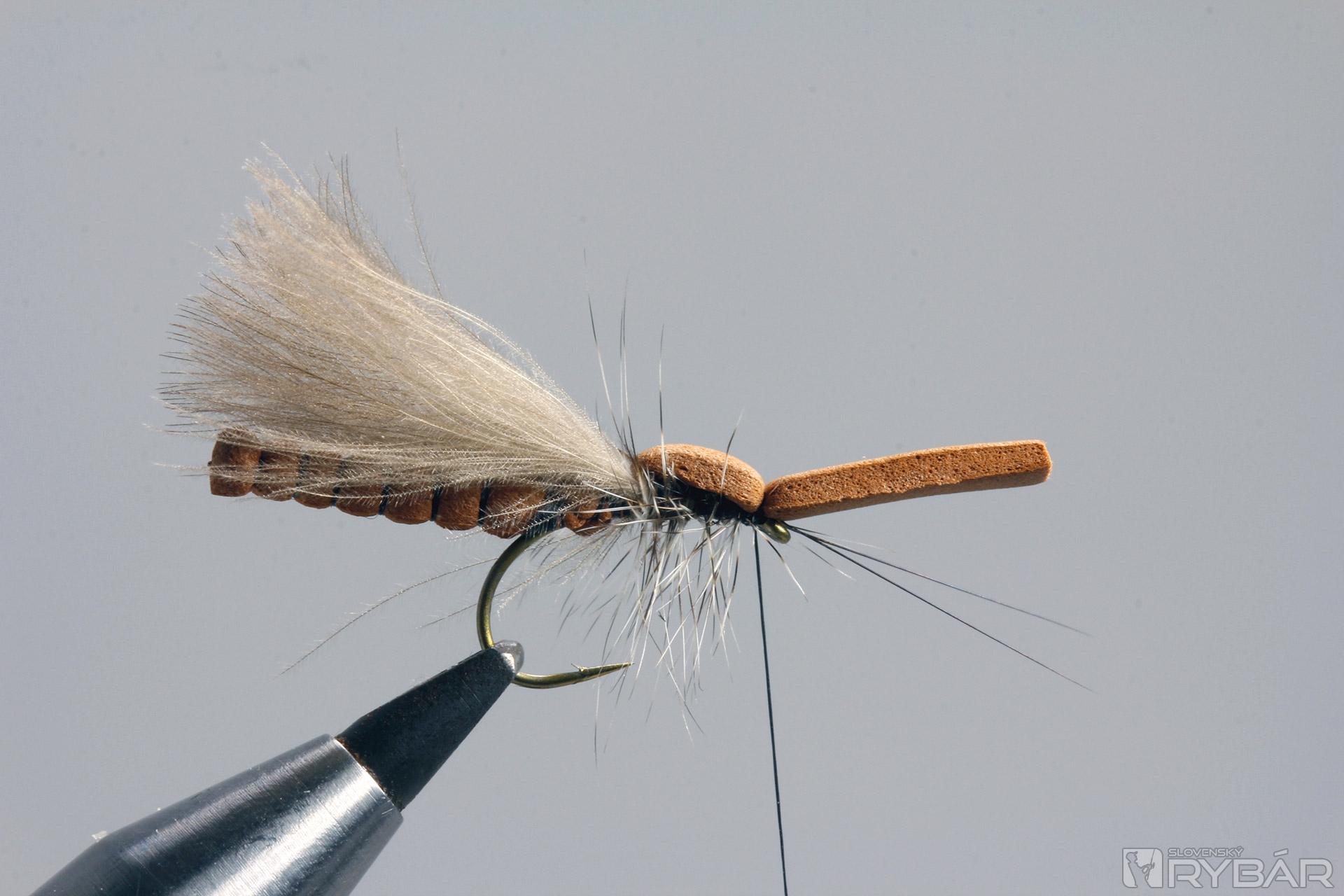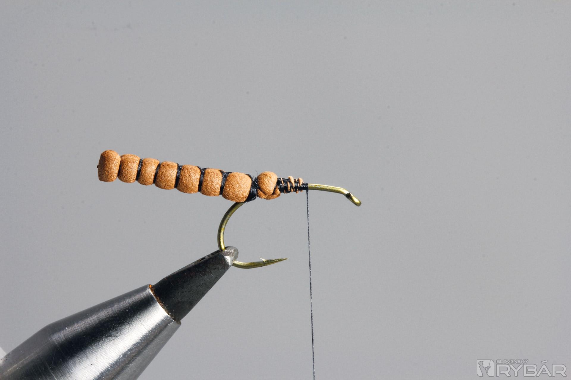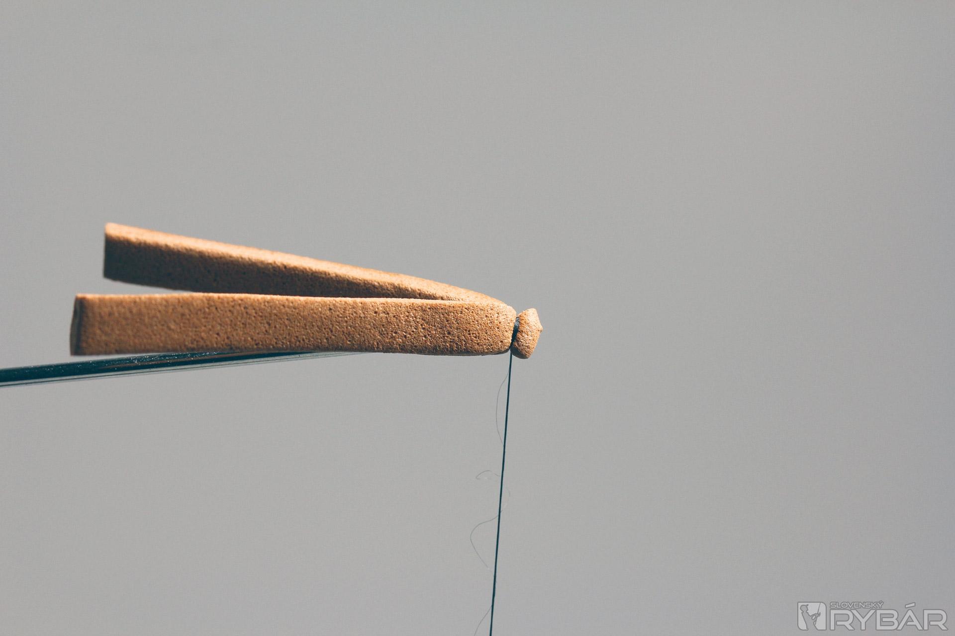 Preložíme časť polycelónu a zhotovíme hlavičku mušky.