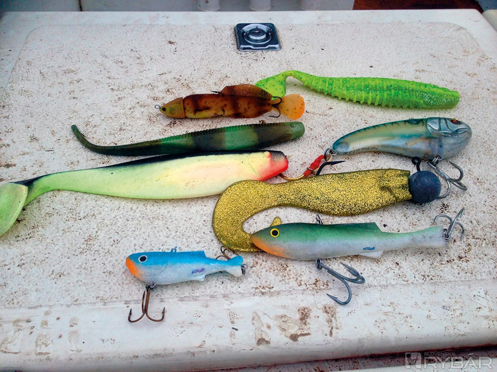 Zase chceme ísť na sumce, takže nás nečaká iné, iba použiť mŕtve montáže a umelé nástrahy. Vyťahujeme veľké gumy a vertikálne voblery, máme ich celé škatule, lebo na toto sme pripravení vždy. Neexistuje aby niečo prebehlo bez nejakej kľučky. Živá nástraha je lepšia, ale keď nie je nič iné, bude zmŕtvychvstanie. Skúšame, špekulujeme, povoľujeme, preväzujeme, kým tie zdochnuté potvorky vo vode nerobia čo chceme my. Na konci nejako dávame dokopy montáž, ktorú dokážeme aj v 10-15-metrovej hĺbke viesť dostatočne jemne a precízne. Pri hladine to preskúšavame ako to vyzerá, púšťame dole a kontrolujem pohyb na sonare. Krása, ako živá ryba.