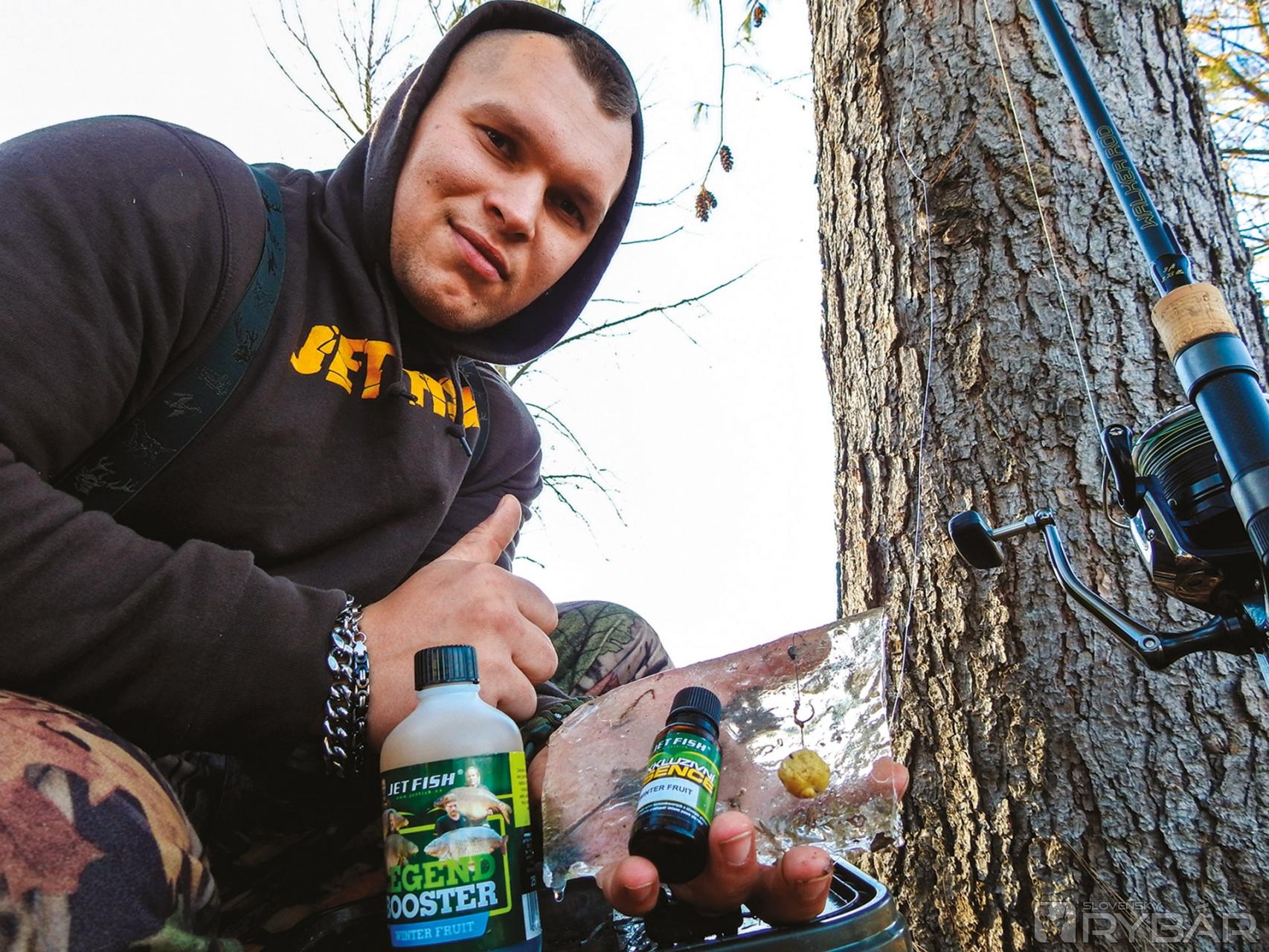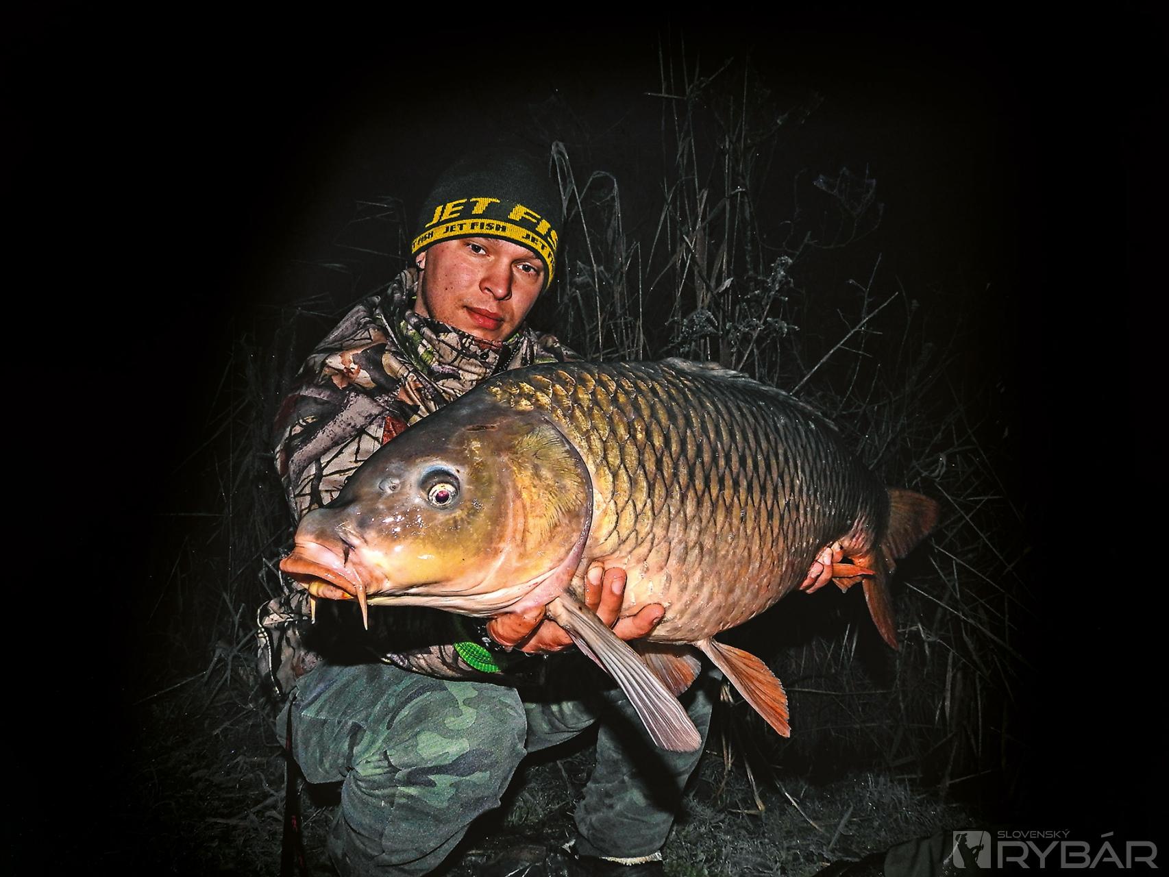 V mojom prípade som to troška šperkoval a využíval z možností, ktoré nám ponúka JET FISH. Konkrétne išlo o produkty, ktoré boli vytvorené extra na lov kaprov v zime. Svoje montáže som skúšal dávať na miesta v hlbších častiach jazera. Vedel som, že aj keď ryby sa počas dňa vytiahnu do plytších miest, ktoré som až tak ja k dispozícii nemal, tak určite sa potom budú musieť stiahnuť aj do tých hlbších častí. Zvolil som si preto miesta pod hranami, kde hĺbky klesali až do 9 metrov. Jedno miesto však pre mňa osobne bolo top a to v 7,5-metrovej hĺbke, kde bolo pod hranou tvrdé dno a troška rovinka a hneď za tým husté vodné rastlinstvo. Odtiaľ som dosiahol aj svoje zábery, ktoré som premenil. Išlo o krásne stavaných šupináčov s hmotnosťami okolo 12-13 kg. Všetky moje zábery prišli skoro ráno, keď najviac mrzlo, no aj napriek tomu som si to vychutnával naplno. Ako som spomenul, zvolil som si nástrahu určenú na zimnú kaprárčinu, konkrétne išlo o boilies WINTER FRUIT z radu LEGEND. Pre väčšiu atraktivitu som pridával do svojej kŕmnej zmesi aj booster. Montáže, pri ktorých som používal aj PVA, som ešte predtým, ako som ich zaviezol, nechal tak isto nasiaknuť boostrom, keďže ani jeden z boostrov JET FISH nerozpúšťa PVA materiály. Tak isto som dával rôzne kombinácie s plavačkami, no ako najlepšie sa mi osvedčila jedna 16 mm guľôčka, ktorú som troška orezal a pre ešte väčšiu atraktivitu využil ďalšiu super vec a to konkrétne exkluzívnu esenciu, tak isto príchute WINTER FRUIT. Po kvapke z každej strany kde som orezal a nechať troška nasiaknuť to bolo tip top! Skúšal som aj svoj obľúbený SEAFOOD v 16 mm veľkosti s 11 mm pop up dumbelskou SLIVKA- SCOPEX, no pri jednom zo záberov z 9 m hĺbky súboj vyhral môj protivník. Čo sa týka koncových montáží, tak obidve zostavy boli celo priebežné a používali sme náš obľúbený 45 lb submerge alebo jemnejší 20 lb fluorokarbón illusion. Nadväzce sme taktiež robili z 12 lb fluorokarbónu Illusion, no najlepšie nám to jazdilo s klasickou poťahovanou šnúrkou Black Mystic a háčikom vo veľkosti 8. Tak ako aj v decembri, rovnako aj v januári nám tieto naše zostavy fungovali fantasticky.