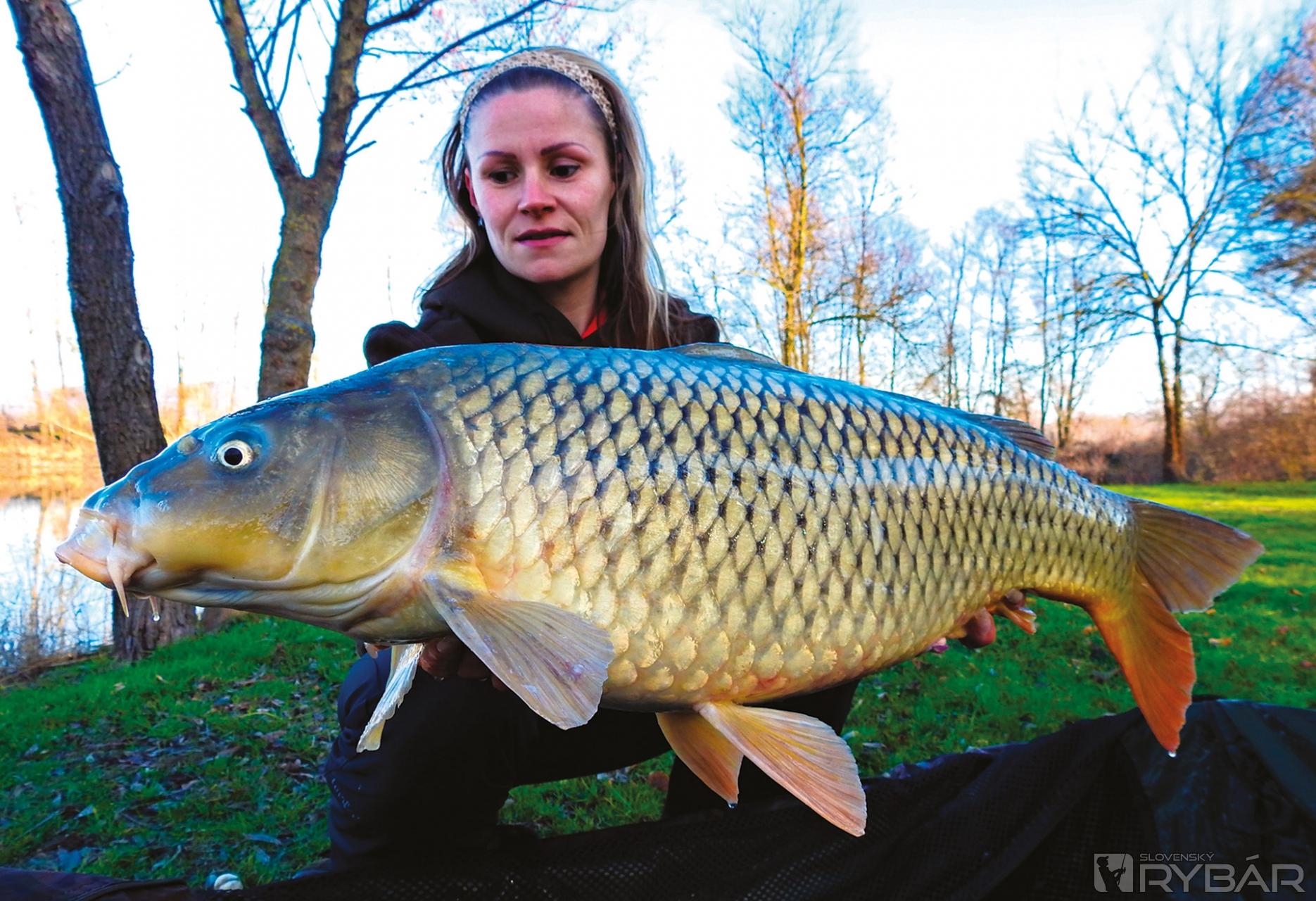 V decembri a začiatkom januára sme strávili ešte nejakých zopár nocí pri vode, pokiaľ nám to počasie a podmienky dovoľovali. Naše cesty smerovali k vode, ktorú už trocha poznáme. Vedeli sme, že to nebude až také jednoduché, no naše skúsenosti nám dopomohli, si myslím, aj k pekným výsledkom. Najdôležitejšie bolo ryby lokalizovať a vybrať si správne miesta. Aj keď teploty sa počas dňa pohybovali iba tesne nad nulou a noci boli dosť mrazivé, tak naše rybačky nevyšli nazmar. Zubaté slnko, ktoré cez deň svietilo, prinútilo aj kapry k väčšej aktivite. Anika si našla dobré miesta a pochytala najmä počas dňa pekné šupináče od 11 do 13 kg. Miesta si našla a skúšala chytať v hĺbkach od 3 do 4 metrov. Ako krmivo si zvolila boilies z radu Mystery a konkrétne jej obľúbenú príchuť JAHODA‑MORUŠA, ktorú pre väčšiu atraktivitu ešte zalievala CSL‑kom rovnakej príchute. Samotnú nástrahu kombinovala ešte s rôznymi POP UP. Ako najlepšia kombinácia sa jej osvedčila 20 mm boilies JAHODA‑MORUŠA s 10 mm popkou PEPER, ktorú si ešte namočila v dipe. Na takúto dobrotu skočil aj v jeden mrazivý podvečer krásny, skoro 16 kg vážiaci šupináč. V daný moment však priateľka bola preč, a tak som po asi 10-minútovom súboji tohto bojovníka zdolal ja na jej prút, ale všetko bolo dobre načasované a Anika sa vrátila v pravý moment na to, aby si ho vzala a spravila si s ním fotku, predsa prút bol jej. Tomu sa vraví tímová spolupráca!