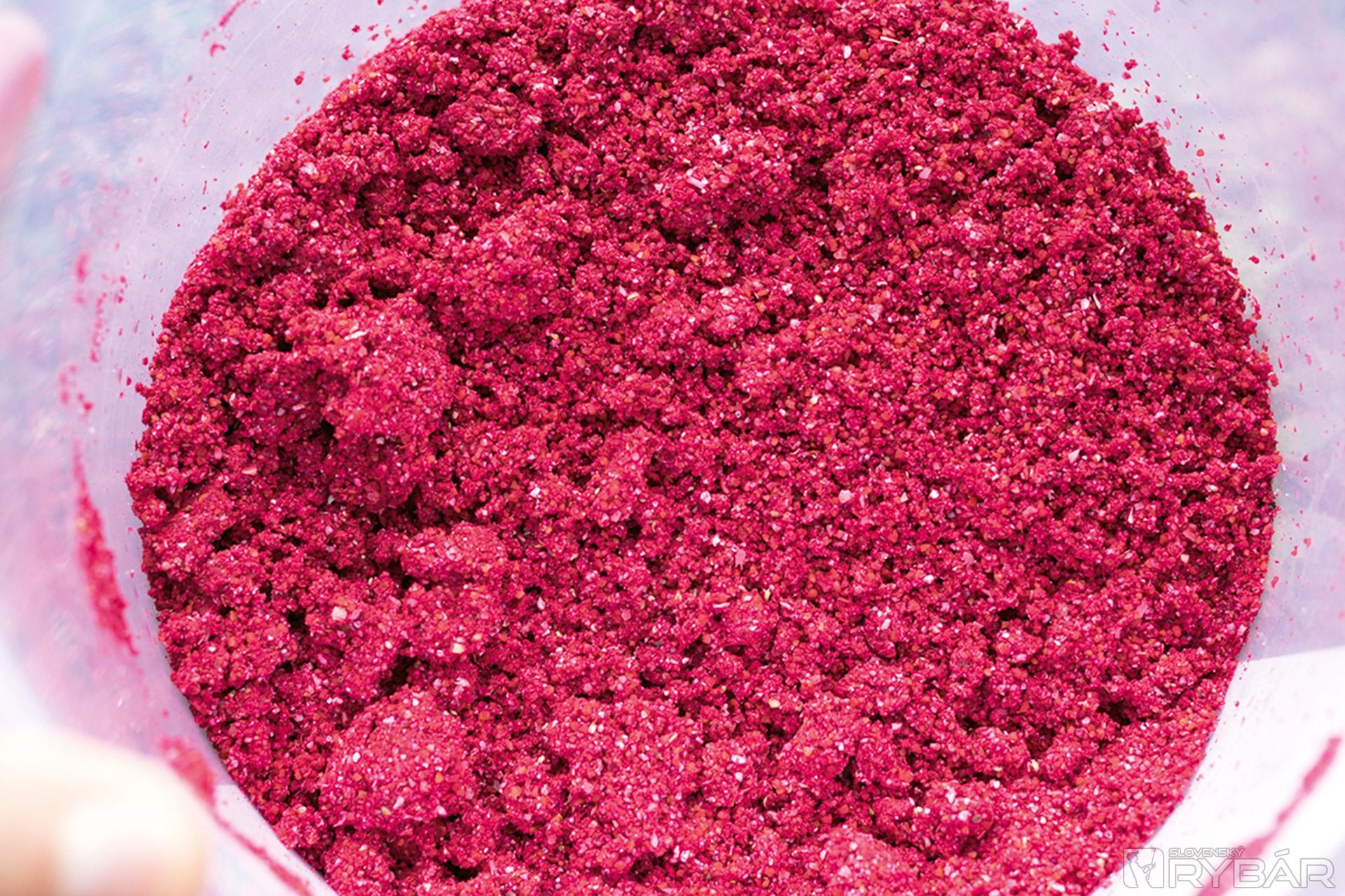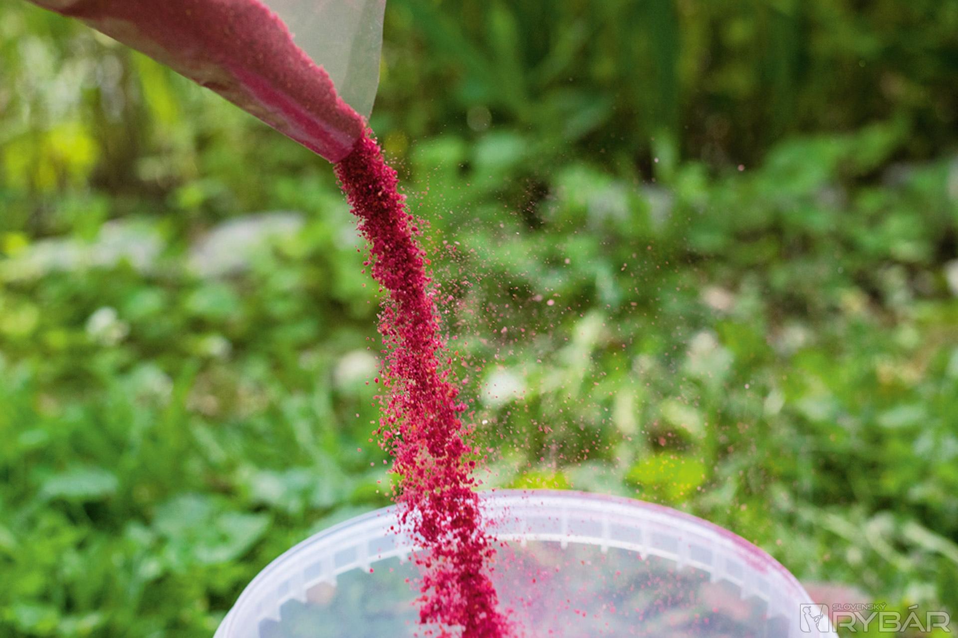 Sladkú líniu reprezentuje jahodový methodmix a fluoro liquid s identickou príchuťou. Odporúčame na rybačky v studených vodách. Mix má štruktúru drobných častíc až jemnej múčky a je použiteľný do rôznych typov košíkov. Či hovoríme o klasickej plávanej alebo feedri, s touto návnadou môžeme byť úspešní v každom prípade. Po otvorení vedra a načatí červeného mixu hneď zacítime prirodzenú a príjemnú sladkú vôňu jahôd – neexistuje ryba, ktorá by dokázala odolať. Obsah vrecka vysypme do vedra, pridajme liquid – miešajme, kým nedosiahneme požadovanú konzistenciu. Dokonalá je vtedy, ak ju vieme rukami sformovať, ale zároveň sa rozpadá pri jemnom tlaku. Keď máme hotovo, vezmime si sito a raz‑dvakrát cezeň zmes prepracujme. Čím jemnejšiu konzistenciu dosiahneme, tým lepšie sa bude krmivo rozpúšťať vo vode, a tak bude účinnejšie fungovať.