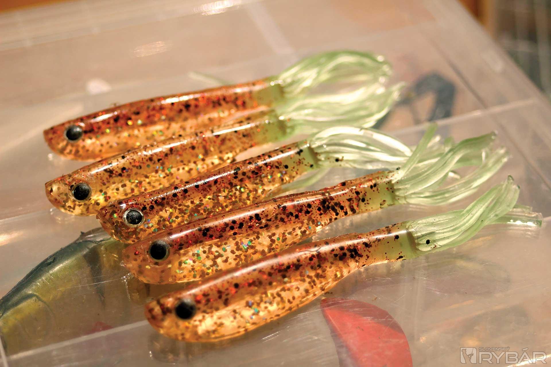 Samotná nástraha by taktiež nemala hlasno dopadať na vodu a už vôbec nie tesne pred rybu. Často je však potrebné použiť pomerne veľké nástrahy, a tak väčšina klasických jigových hláv neprichádza do úvahy. Prichystám si veľmi jednoduchú montáž zloženú s tenšieho fluorokarbónu, háčika s dlhým ramienkom a broku. Vzhľadom na to, že príliš odľahčená guma nemá extra pekný pohyb, volím nástrahy s mäkšej gumy a pohybmi špičky vždy dotváram lákavé vlnenie, keď väčšina dravých rýb neodolá. V tomto prípade sa kreativite medze nekladú, preto odporúčam vyskúšať všelijaké poskoky, poťahovanie, či rýchlosti navíjania.