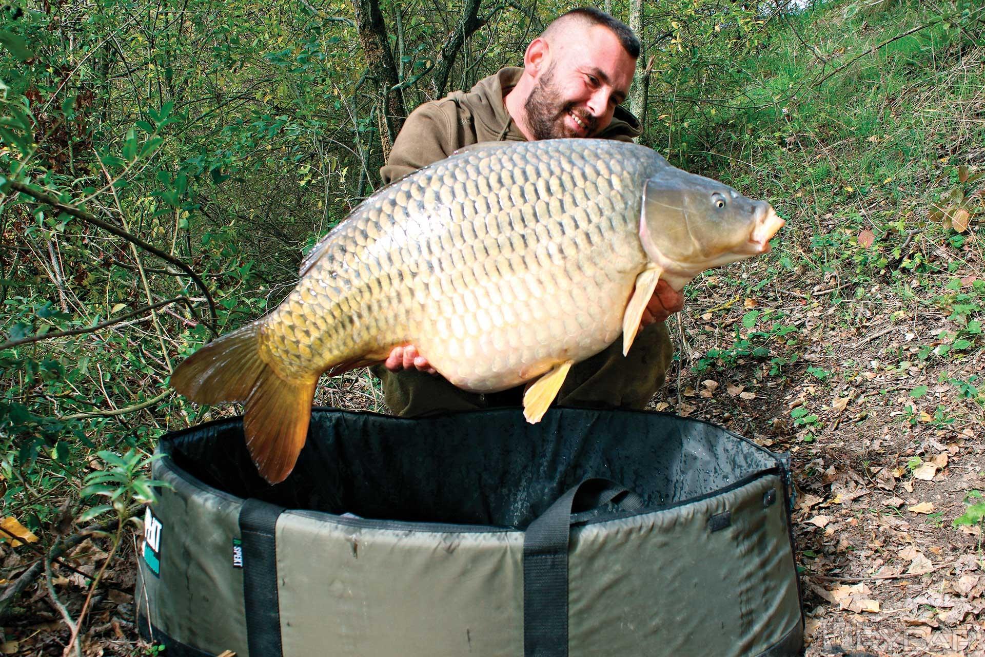Prišiel deň voľna. Pamätám si to ako teraz: vyprevadil som ženu do práce, vonku panovalo krásne slnečné počasie a mne niečo v mojom vnútri hovorilo, že dnes to príde. Do auta som hodil statív, fotoaparát, trakker pva pouch, udice, hrazdy, podložku a neustále som myslel na to, čo táto taktika prinesie. Po príchode na miesto som si udice a montáže pripravil nad lovným miestom a potichučky ako v hrobe som svoje montáže poslal na prvýkrát presne tam, kam som chcel. Na jednom prúte Kill‑Krill 24 mm a na druhom Extasy 24 mm v dipe. V tento deň už som nekŕmil, len som sa vzdialil od udíc a potichučky čakal. Asi po 1,5 hodine som si uvaril kávu a ako som ju sŕkal do seba, rovno na mojom lovnom mieste sa treskol o hladinu obrovský kapor. V tom momente som sa len usmial a povedal som si, mám ich tu. Blížil sa obed a v tráve som si hodil „šlofíka“, keď zrazu na pravom prúte zaznelo jemné pípnutie príposluchu. Srdce mi začalo búšiť ako o život a zrazu bum jazda ako hrom hore prúdom.