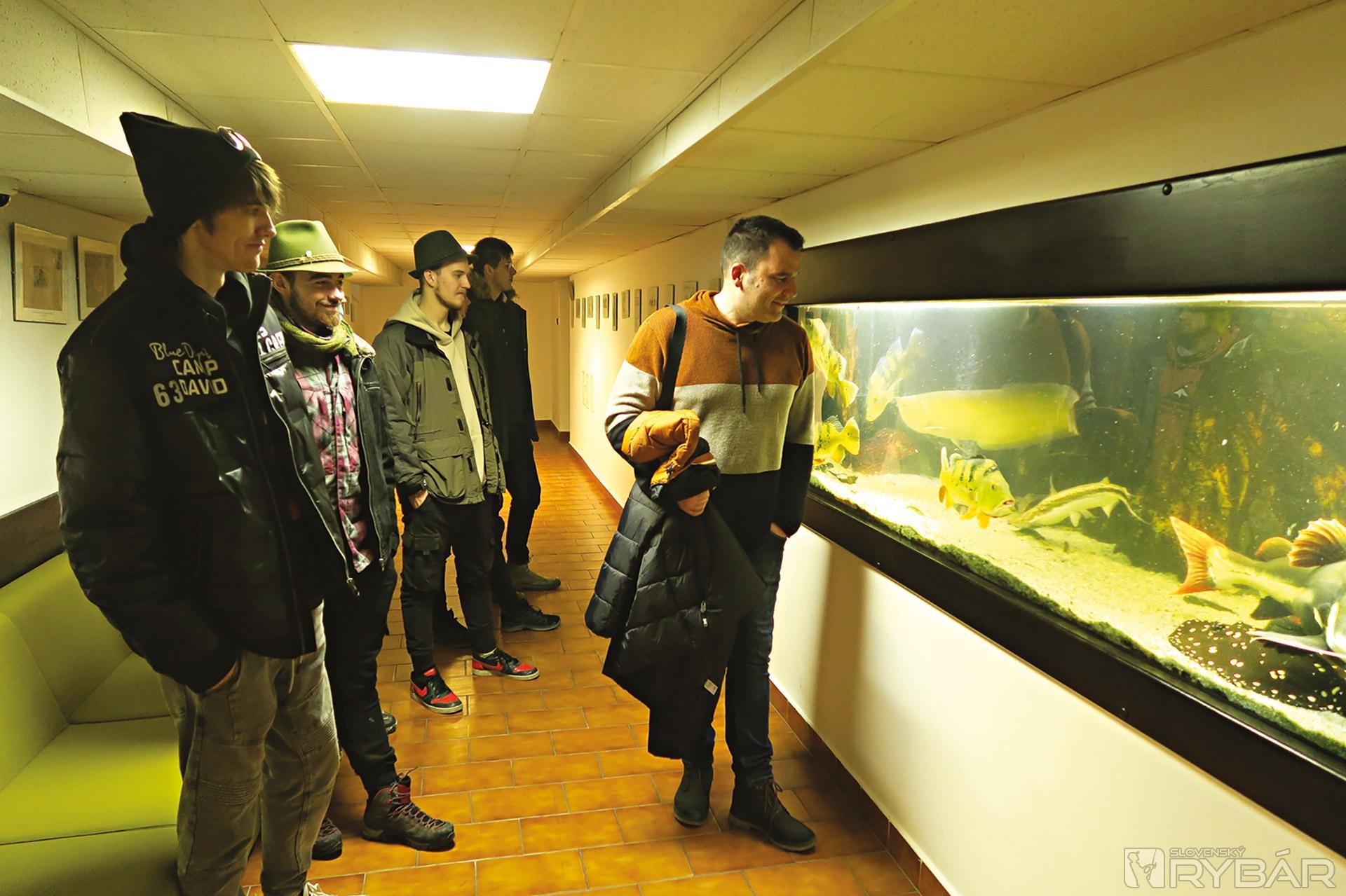 Na rybárskej škole nás okrem špičkového vybavenia osobitne zaujalo malé rybárske múzeum. Boli tu vystavené exponáty vypreparovaných rýb a rôznych živočíchov z okolia vôd a rybníkov. Okrem toho aj modely historických zariadení a pomôcok z dávnej histórie českého rybnikárstva boli mimoriadne zaujímavé. Obdivovali sme aj precízne upravené akváriá v suteréne školy s exotickými rybami, ako aj s našimi bežnými druhmi. Pozorovať reálny život a správanie rýb môžu študenti aj návštevníci školy cez presklenú stenu jazierka, ktoré sa nachádza tiež v areáli školy. Škoda, že nebolo viac času… Museli sme ísť ďalej a pokračovať v programe.