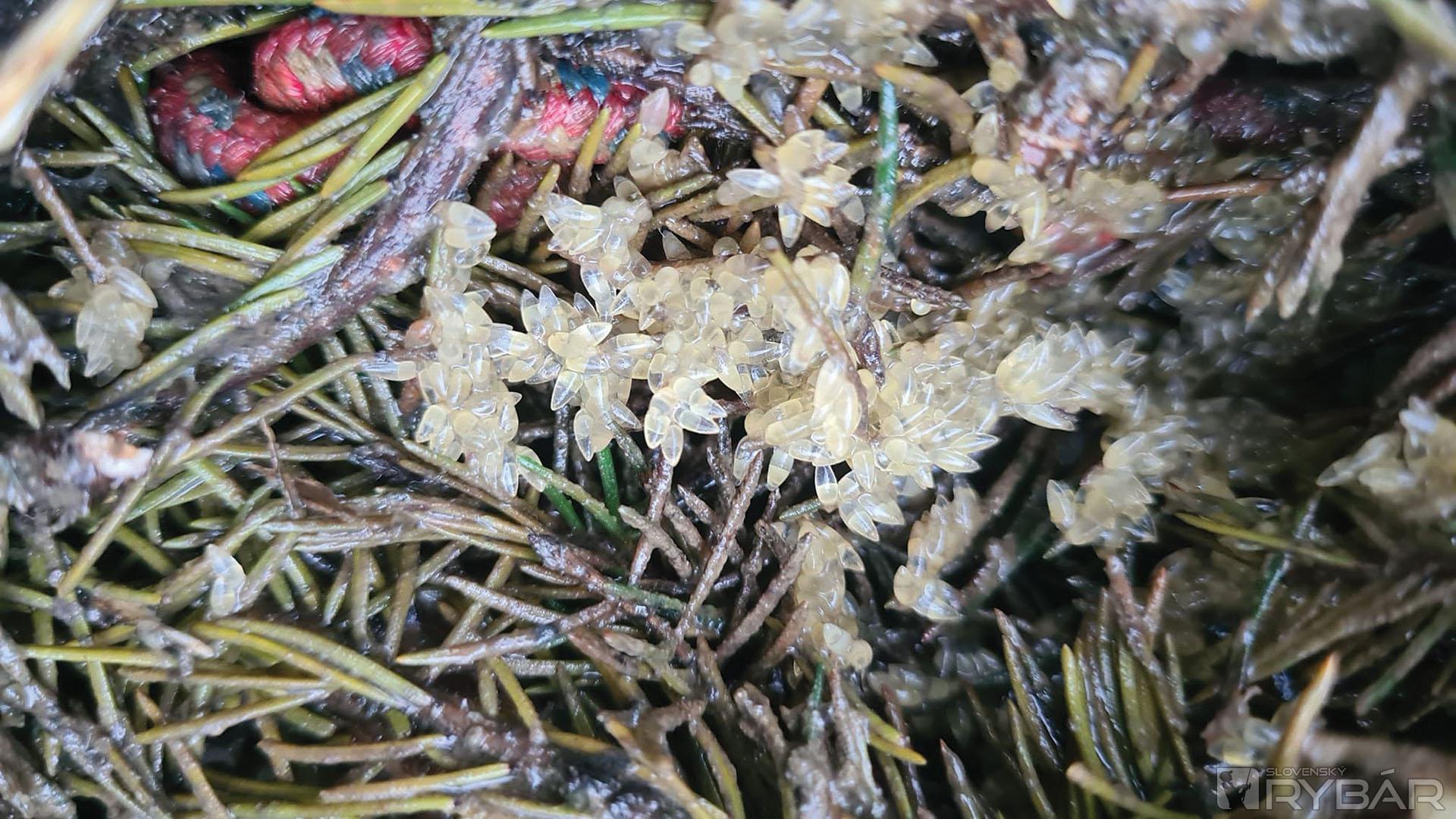 Zaznamenaný bol neres býčka rúrkonosého (Proterorhinus semilunaris) na hniezde vyrobenom zo smrekovej čečiny.