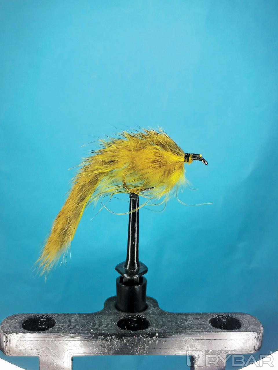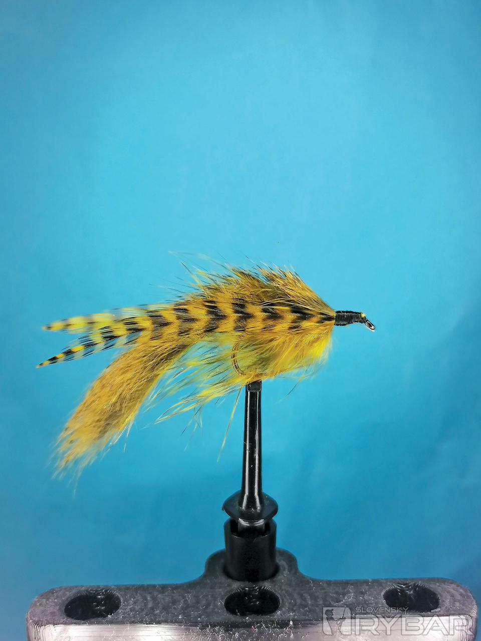 Väčšia muška z typu strímrov na agresívnejšie chytanie predovšetkým väčších rýb. Lovím s muškárkou aftmy 6/7 silonom priemeru 0,22 mm a intermediálnou šnúrou clear. Pri použití dvoch strímrov na rieke ich viažem ďaleko od seba, na nadväzec aspoň 1,2 m, aby sa navzájom nevyrušovali a aby ryba nebola vyplašená pohybom dvoch strímrov blízko seba.