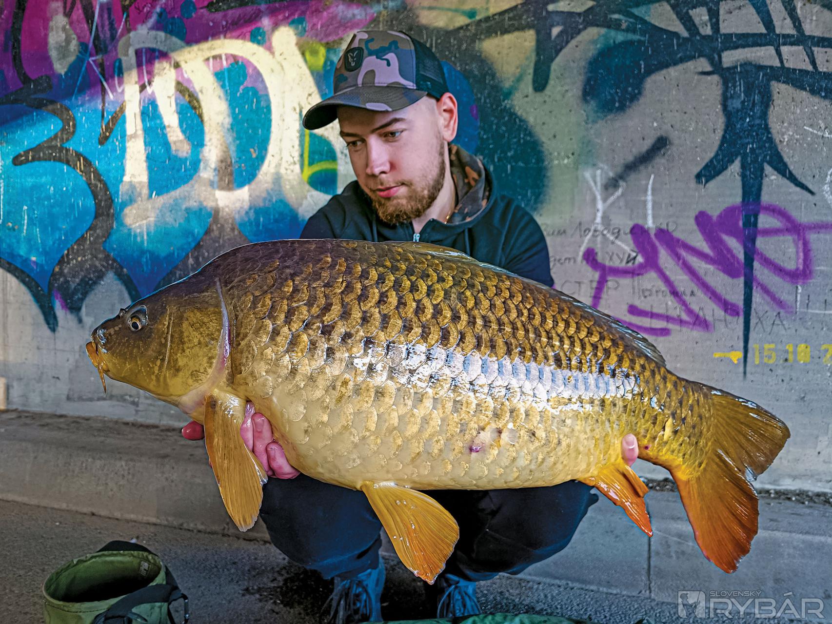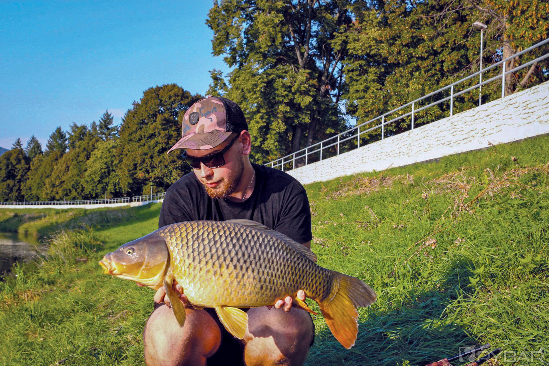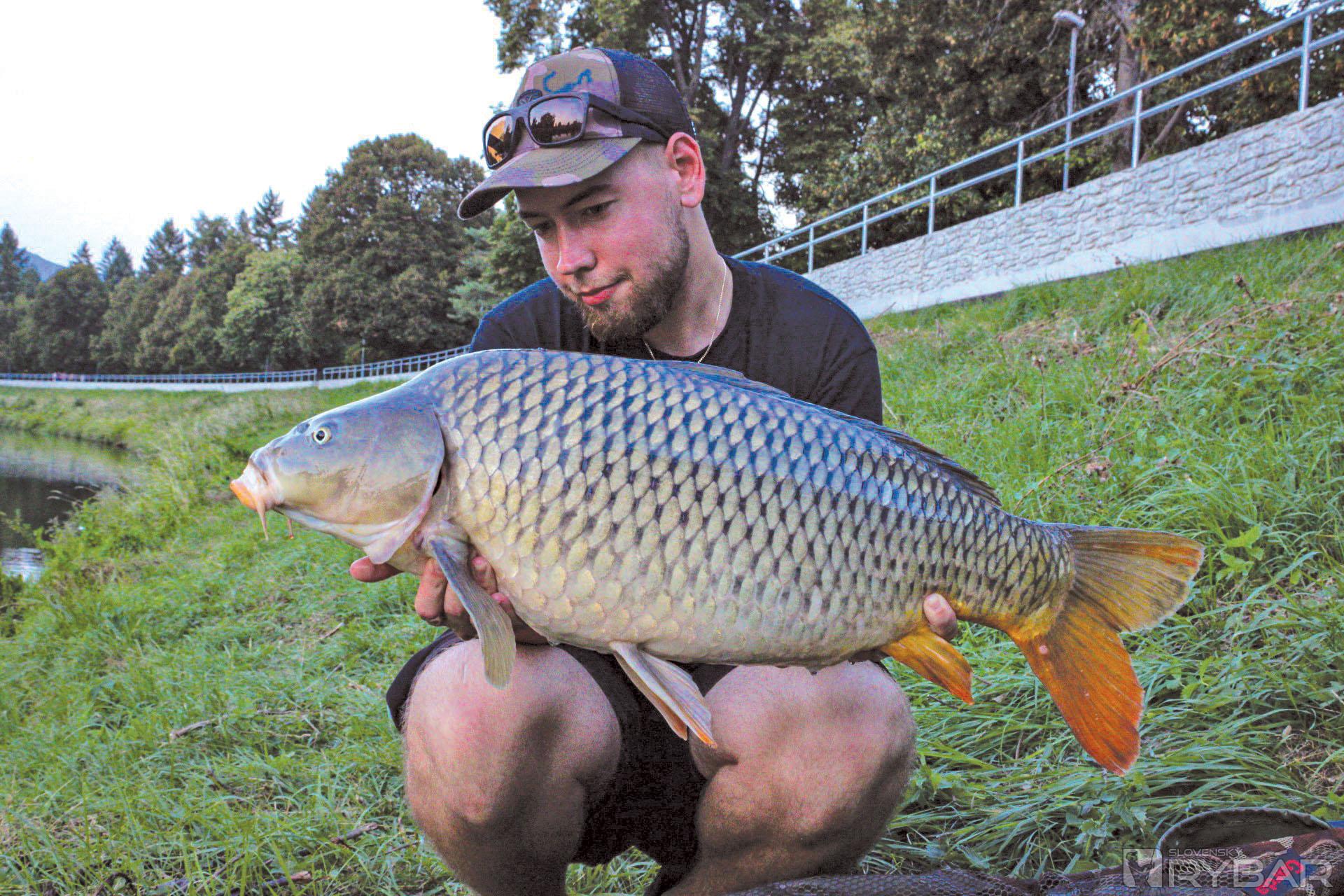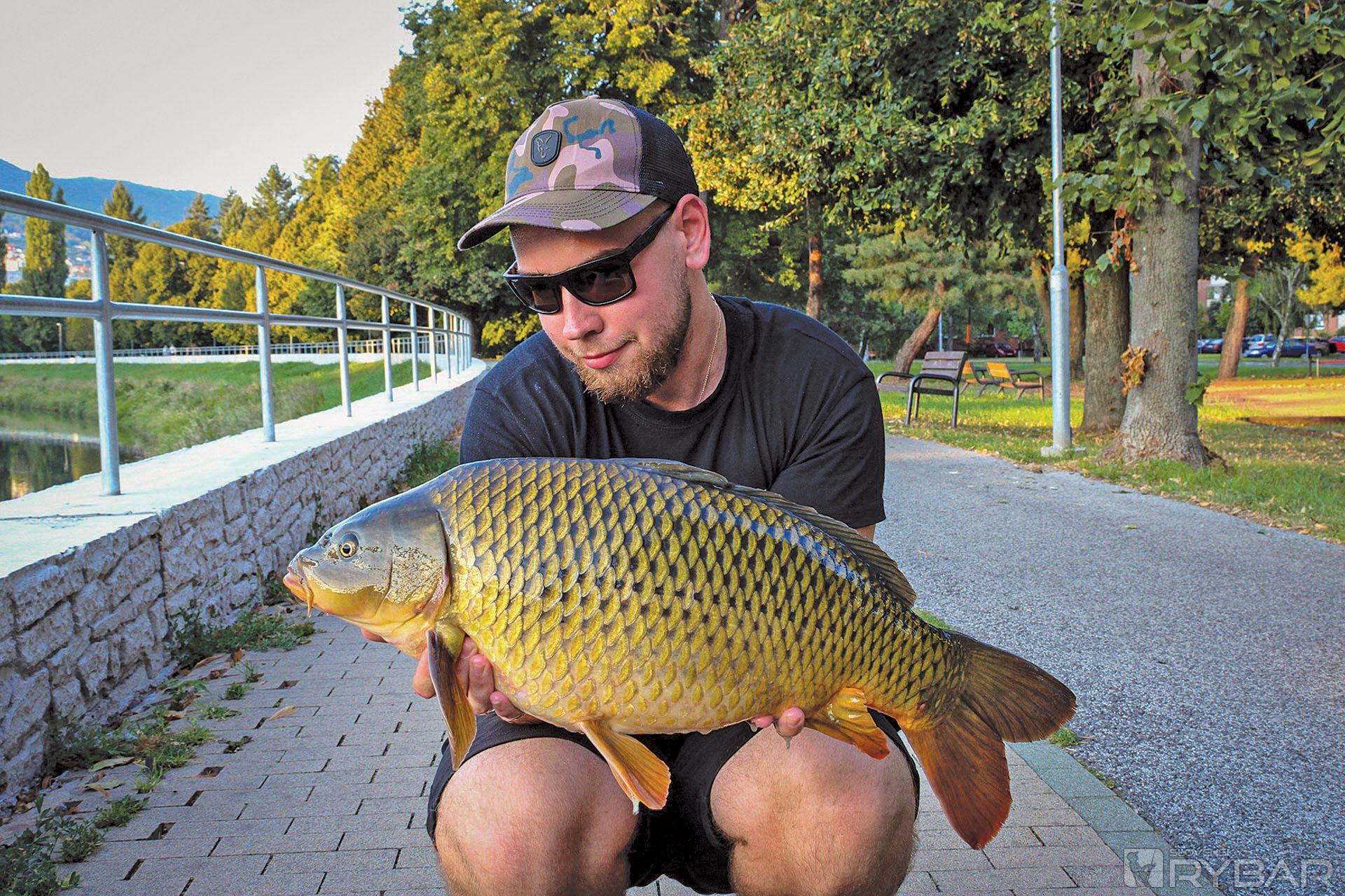 Podarilo sa mi zdolať pár pekných jalcov, ale nebola to cieľová ryba. Chodieval som si miesto aj predkrmovať predtým, ako som išiel chytať a prvé väčšie rybky sa začali ukazovať. Po práci som si vybehol na pár hodín k vode, dokŕmil miesto a nahodil prúty. Podvečer som dostal nesmelú jazdu proti prúdu. Asi po 10 minútach sa mi ukázal prvý kaprík a po pár výpadoch sa mi ho podarilo podobrať. Prvý kaprík z mesta mal zhruba 8 kg, zachutila mu kombinácia Ronnie Rig s popkou Chilli Mango 14 mm s malým PVA balíčkom. Pri fotení sa okolo mňa zbehlo pár okoloidúcich, ktorí tlieskali a gratulovali a fotili si kapríka.