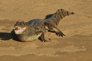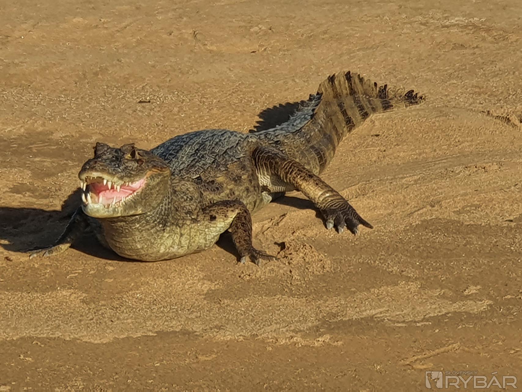 Stmieva sa a my prichádzame k rieke. Trávnatá step sa zmenila na dažďový prales. Pokračujeme za tmy trojhodinovou plavbou malými člnmi do tábora. Ak sa pýtate, čo to má spoločné s rybačkou, tak aj toto k tomu patrí. Tábor je postavený na veľkej piesočnej pláži. Čelovkou zasvietim do neznáma popri okraji rieky a z tmy na mňa žmurkajú zlovestné oči kajmanov, odteraz našich spolubývajúcich. „No, tu sa ja kúpať nebudem!“ hundrem si popod nos a hneď zamietam Zdenkove odporúčanie na osviežujúci kúpeľ v rieke.