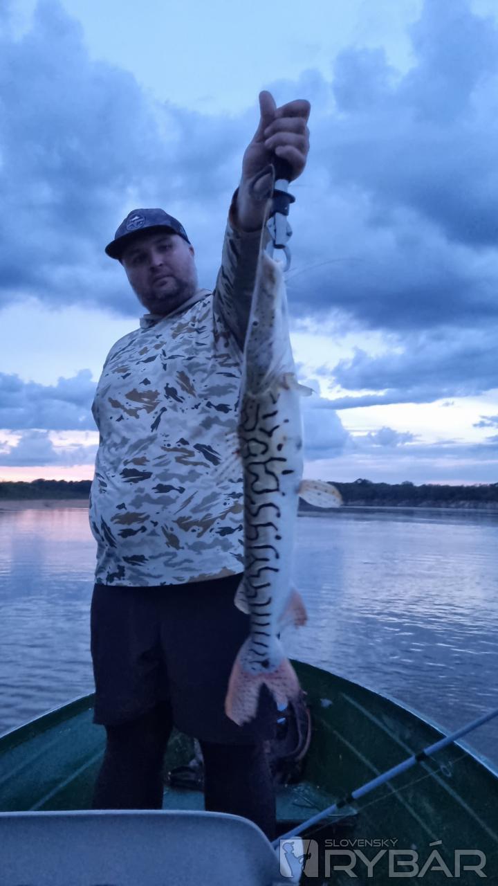 Na tretí deň sme s Michalom chytili úlovok dňa až pri zapadajúcom slnku. Krásny sumec leopardí zaútočil na vobler hlboko pod vodou a keďže ho Riveras zobral do člna, vedeli sme, že okrem obdivovania jeho exteriéru budeme môcť zhodnotiť aj jeho kulinársku výnimočnosť. Inak, len aby sa nezabudlo, piraniu polievku sme mali každý druhý deň a niekedy aj dvakrát. Zaprisahal som sa, že doma na otázku „Jedli ste aj piraňu?“ budem vraždiť.