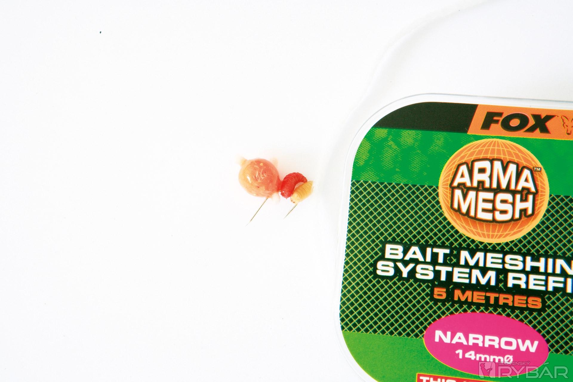 Dlho som sa trápil, ako udržať pastu na háčiku čo najdlhšie, pretože malé ryby ju okamžite rozbili. Výbornou pomôckou sa nakoniec ukázala novinka od firmy Fox – nerozpustná pančucha Arma Mesh. Jej priemer je len 14 mm a výborne sa hodí na menšie nástrahy. Narobil som si vopred malé guľôčky cesta, ktoré na vzduchu postupne chytajú suchú škrupinku. Potom som jednoducho urobil na pančuche uzlík, hodil dovnútra guľku, stiahol ju aby bola tesne obopnutá a zauzlil aj na druhom konci. Potom som háčik prepichol cez uzlík, čím som dosiahol montáž ako na boilies.
