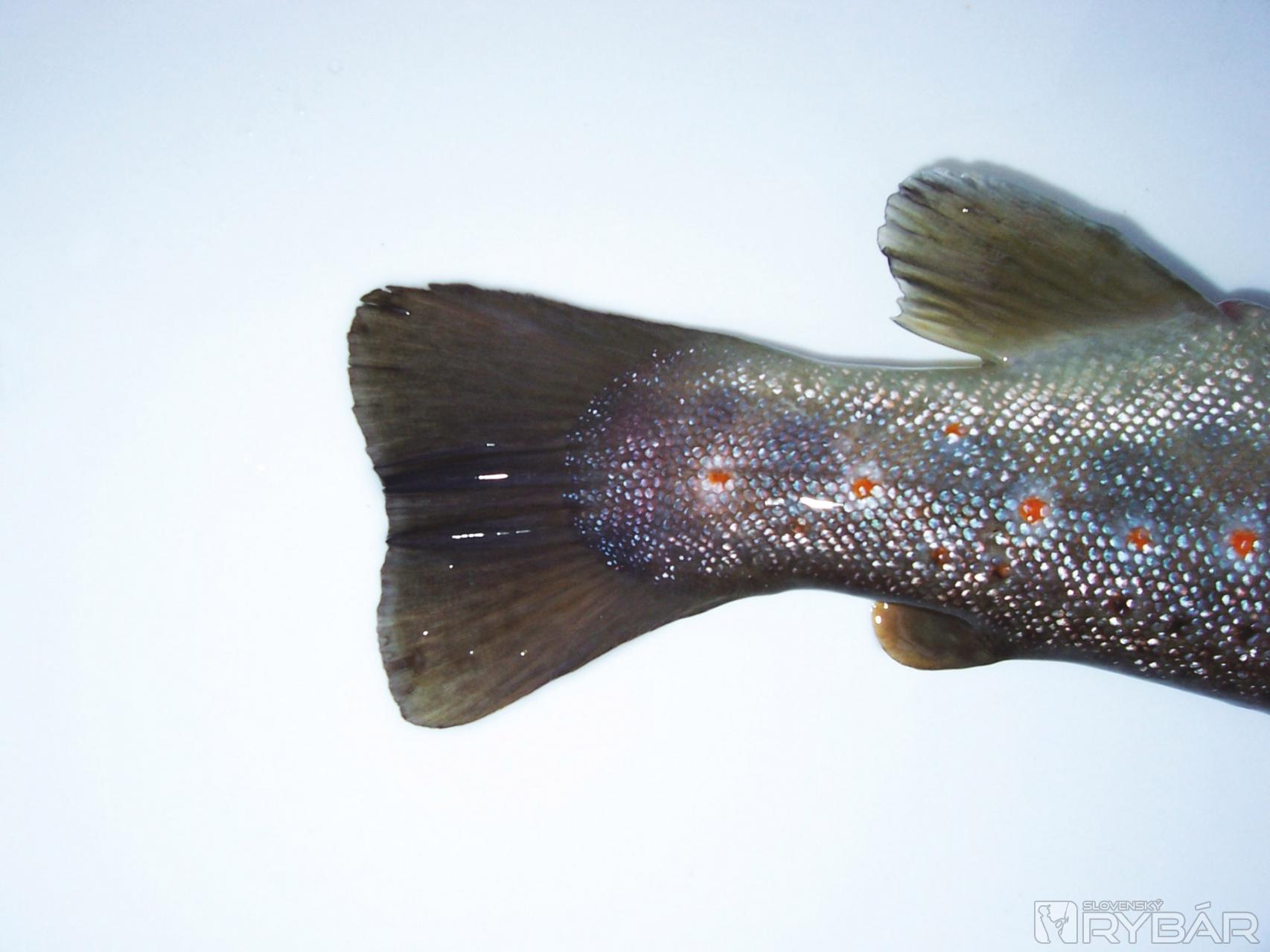 Pstruh potočný – na bokoch má výrazné červené škvrny, ktoré môžu byť bielo lemované. Čierne škvrny zasahujú aj na žiabrové viečka, chrbtovú plutvu a červené aj na tukovú plutvičku.