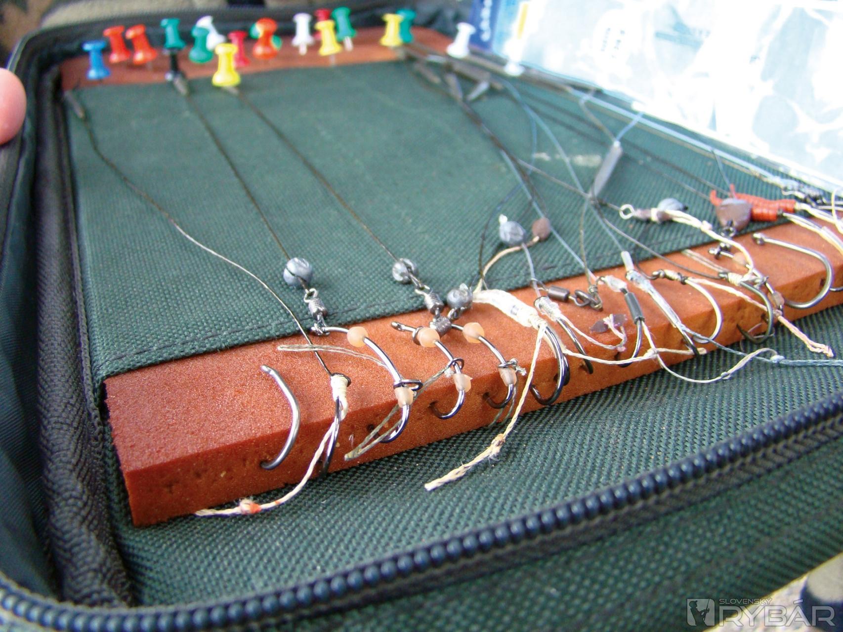 Keďže voda mala len 2,8 oC a ryby najskôr ešte na jedno oko spali, rozhodol sa pre vysoko atraktívne nástrahy s minimom voľnej návnady, aby sa ryby nemohli zasýtiť. Zimnú letargiu rýb mal na pamäti aj pri viazaní montáži. Prvú uviazal z jemného 15 lb fluorokarbónu ukončenú ľahučkým, zato super ostrým Longshan Nailerom č. 8. Druhú montáž uviazal z jemnej 15 lb pletenej šnúrky Smooth, ukončenú Centrurion č.10 s transparentným mouthsnaggerom.
