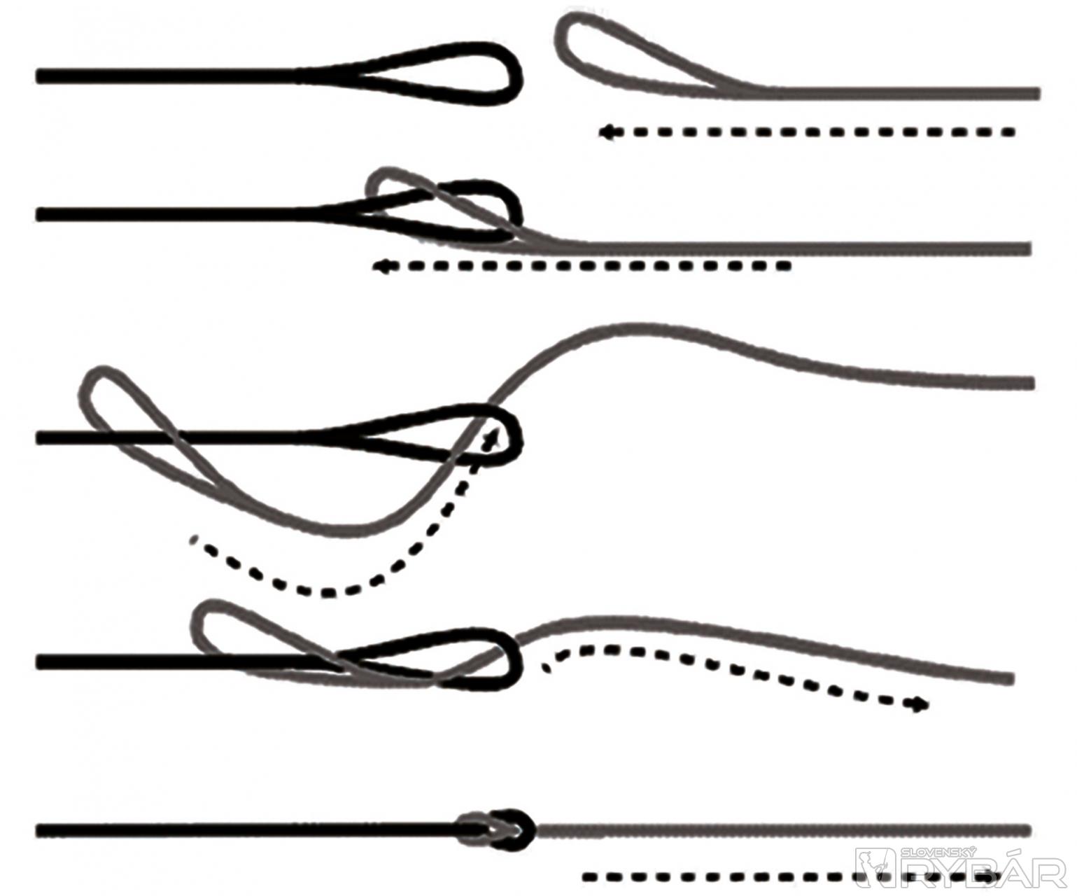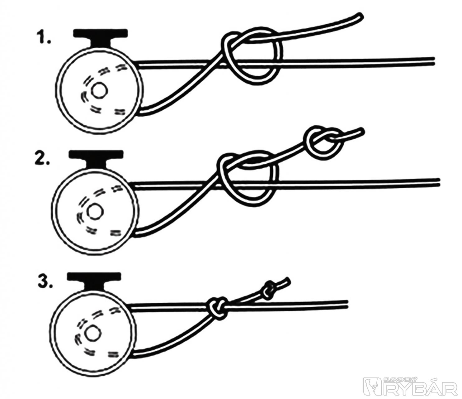 S navijakom ho spojíme uzlom „Arbor knot“ – cievkovým uzlom. Dajte si záležať na správnom zostavení tohto dôležitého uzla. Ak bude málo utiahnutý, celý systém – backing, šnúra, nadväzec sa bude krútiť okolo osi navijaka.