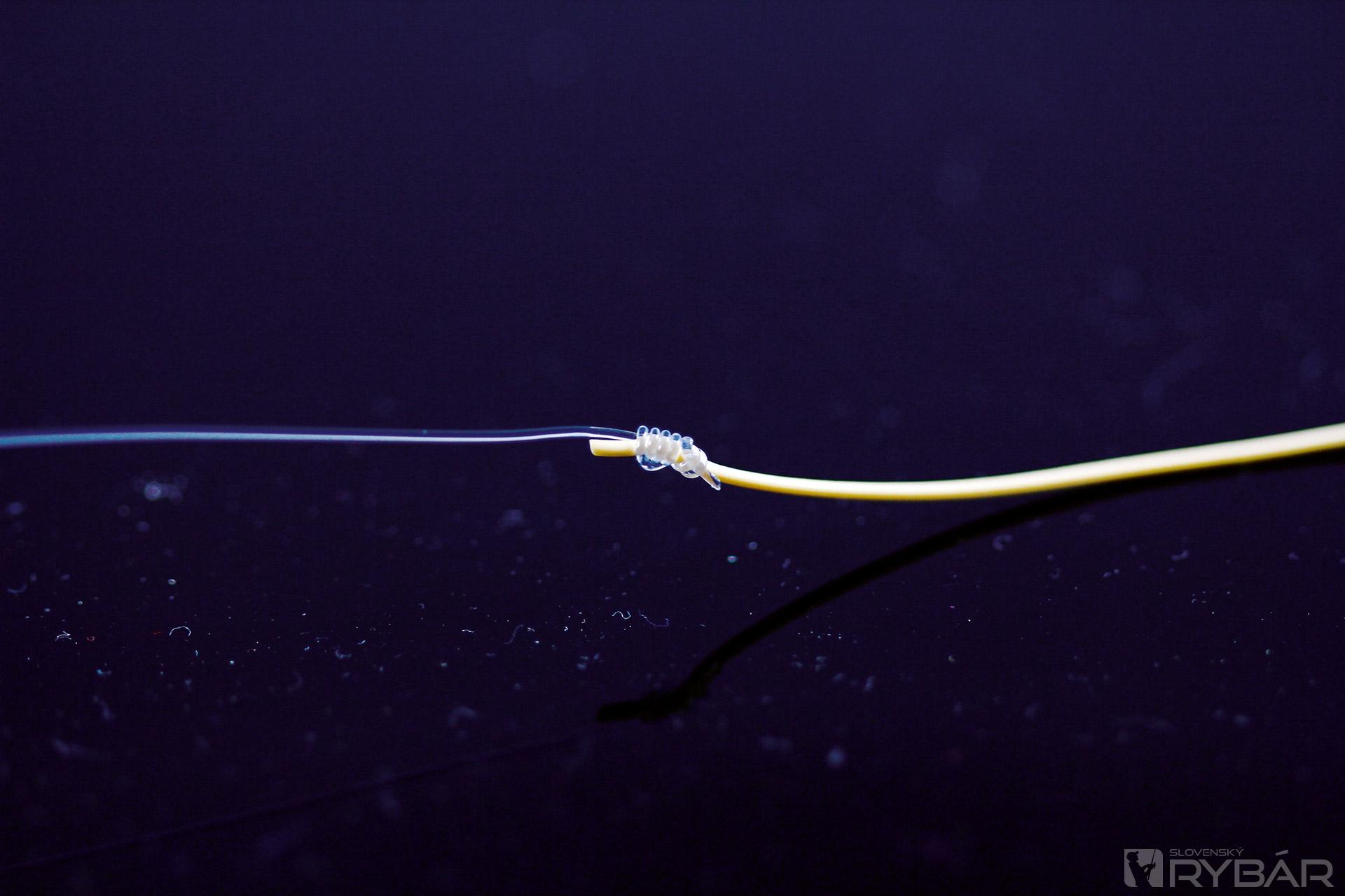 Ja osobne preferujem zužovaný nadväzec dĺžky približne jeden meter. Na jeho konci priviažem mikrokrúžok. Do neho naviažem koncový nadväzec. Ak lovím so suchou muškou, na jeho koniec ju jednoducho naviažem klasickým uzlom v angličtine označovaným ako „improved clinch“ a idem na vec.