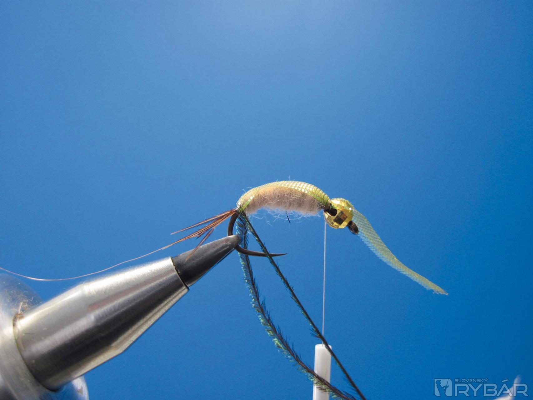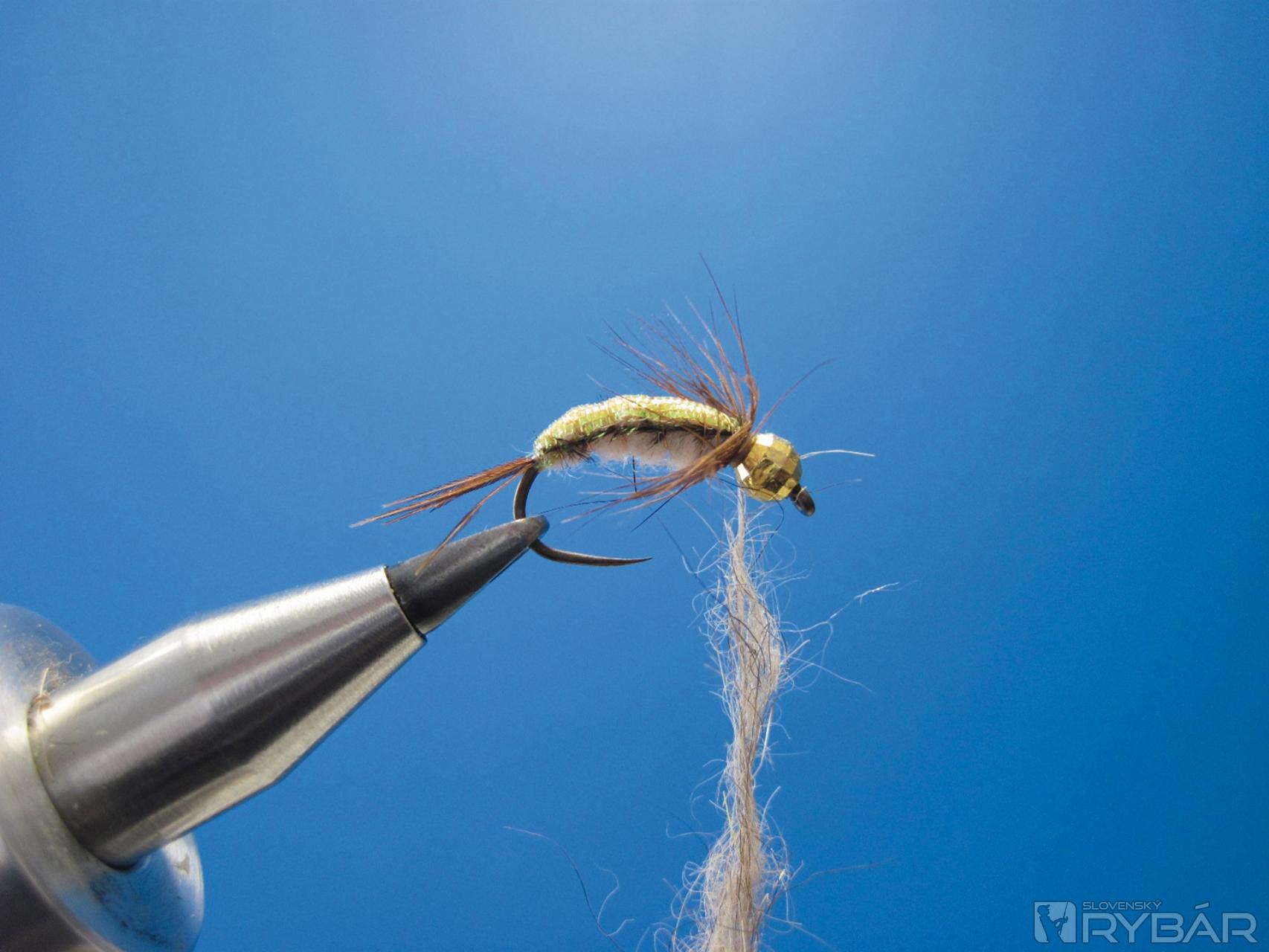 Nymfa, ktorú si dnes ukážeme, je ideálna práve na jar, keď je voda zdvihnutá a mierne zakalená od topiaceho sa snehu. Môžeme ju používať v rôznych veľkostiach a farebných odtieňoch, osobne ju preferujem zaťaženú a vo väčších rozmeroch. Kvôli lesklému chrbátiku je vo vode výborne viditeľná aj vo väčších hĺbkach. Navyše, vďaka farebnému odtieňu a v kombinácii materiálov, je táto nymfa tiež funkčná a výborne chytá.