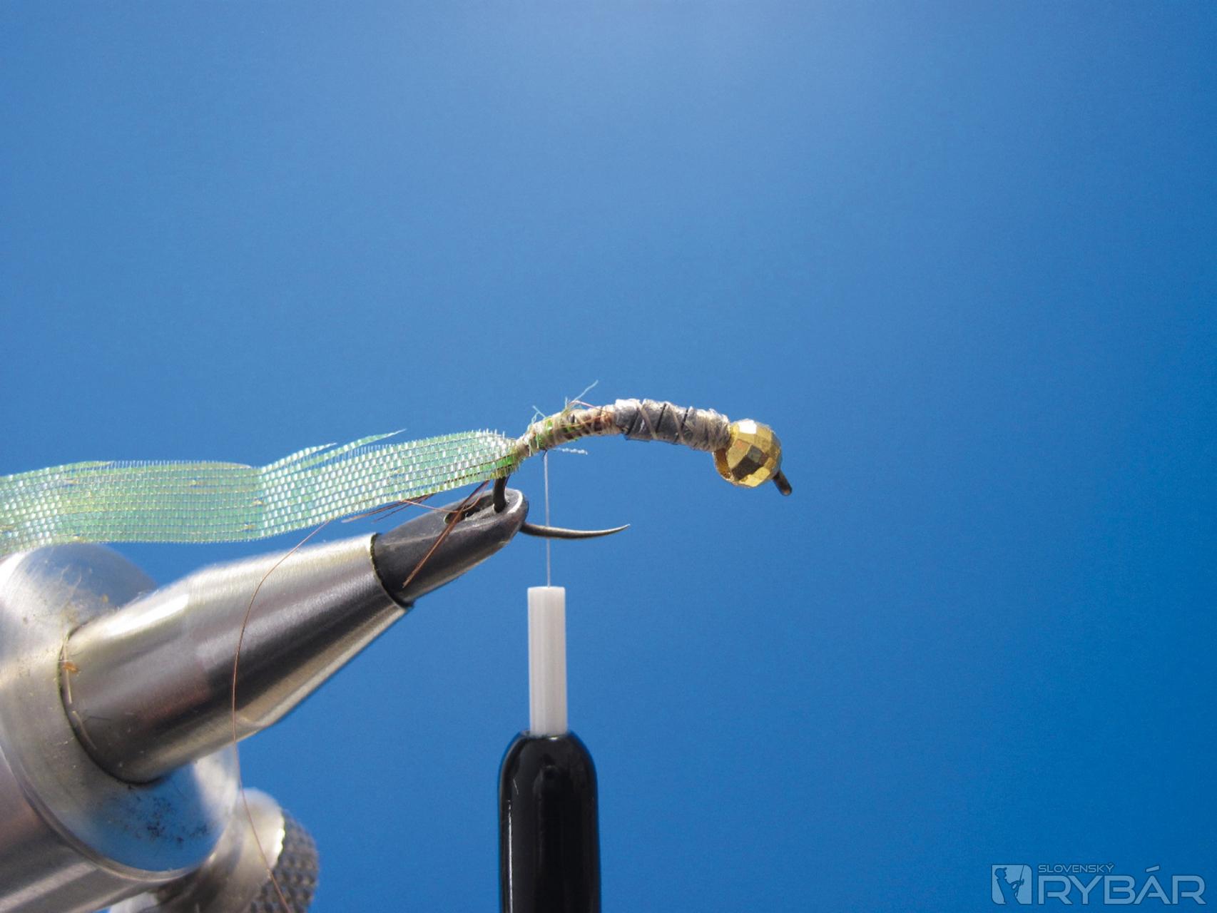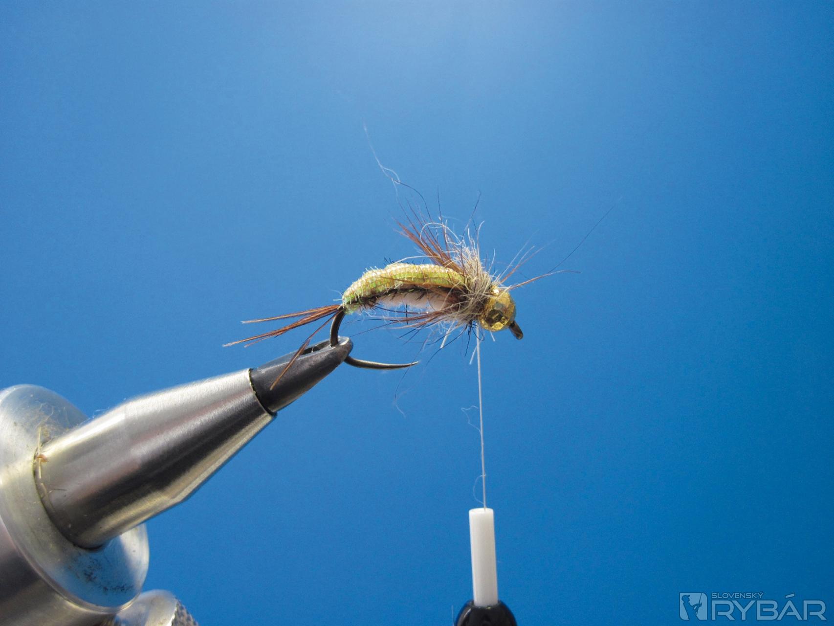V dnešnej časti si preto ukážeme postup viazania jednej netradičnej a pomerne náročnej nymfy, ktorá už vyžaduje trocha zručnosti. Zjari je voda väčšinou zdvihnutá a mierne zakalená, takže je dobré, samozrejme, používať zaťažené nymfy a ďalšie druhy mokrých mušiek; vždy však záleží na hĺbke a rýchlosti prúdu.