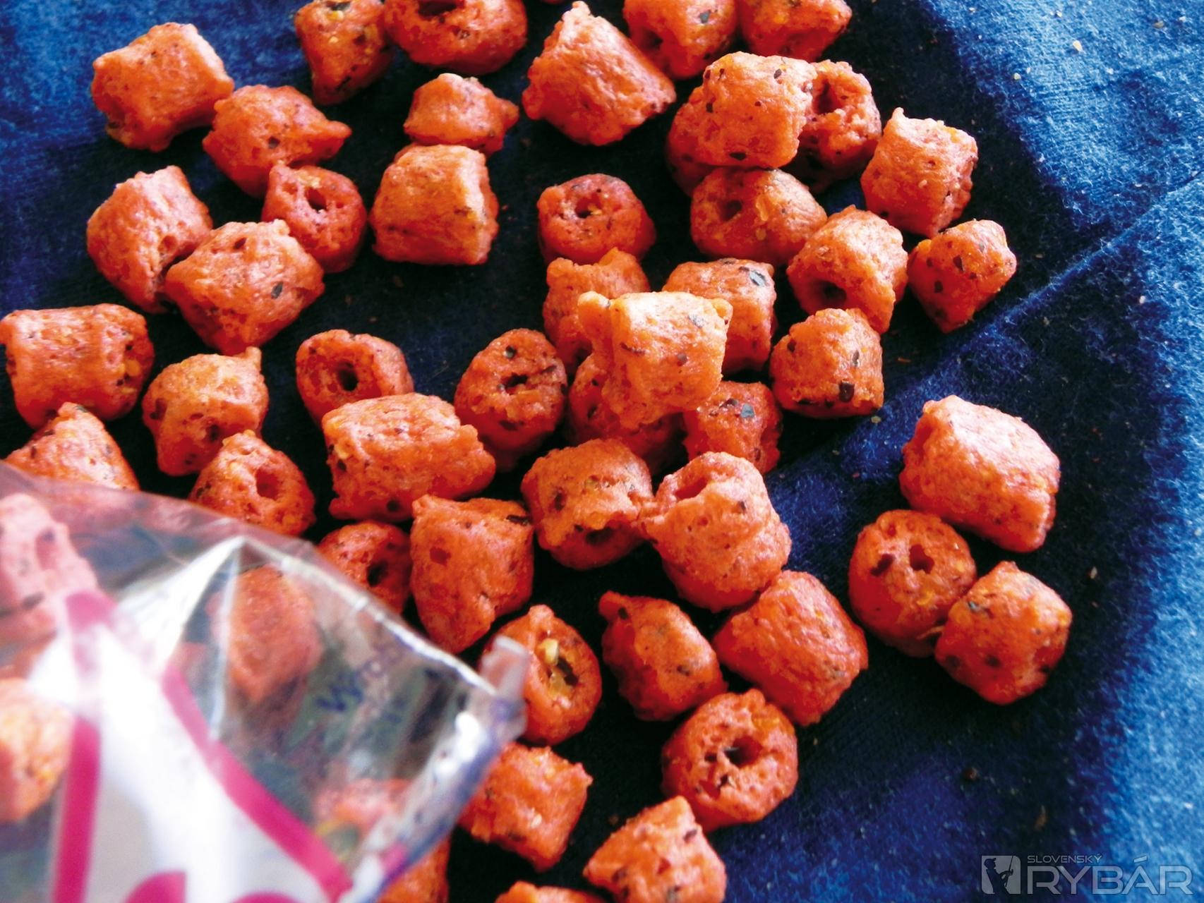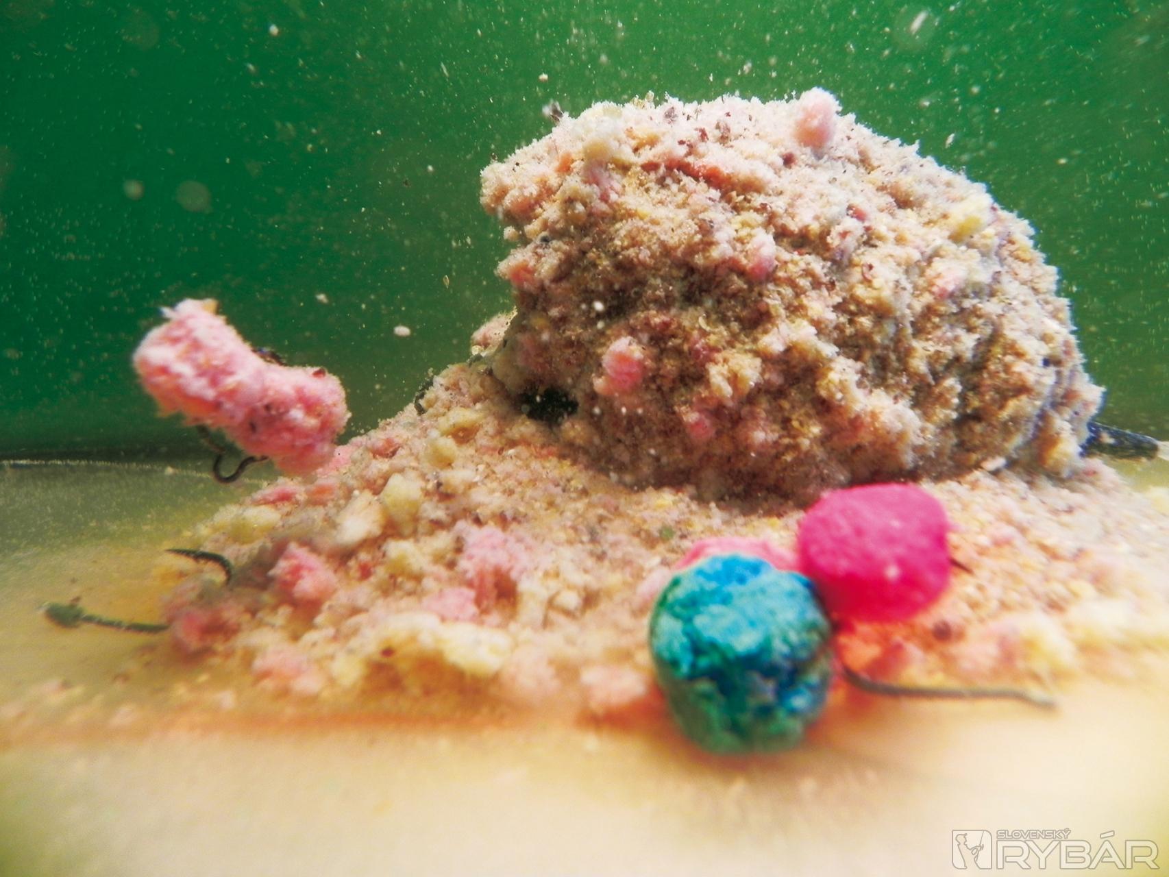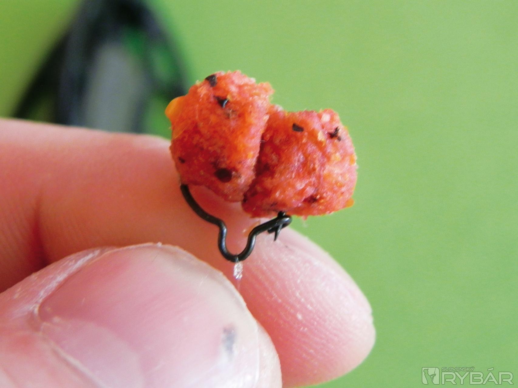 Po dvoch-troch hodinách som ich z handričky vybral a odložil do suchej nádobky, príliš veľa vlhka by mi z nich urobilo veľmi mäkké nástrahy a mohli by mi pri nahadzovaní odpadnúť. Túto nástrahu nedávam priamo na háčik, využívam to, že majú v strede dierku a navliekam dva kúsky na maggot klip. Pôvodne je určený na navliekanie živej nástrahy, ale je ho využívam po svojom. Vnadiaca zmes K1, do ktorej vmiešam Liquid Food – Krill, mi zabezpečí lákavý podklad na lovnom mieste.