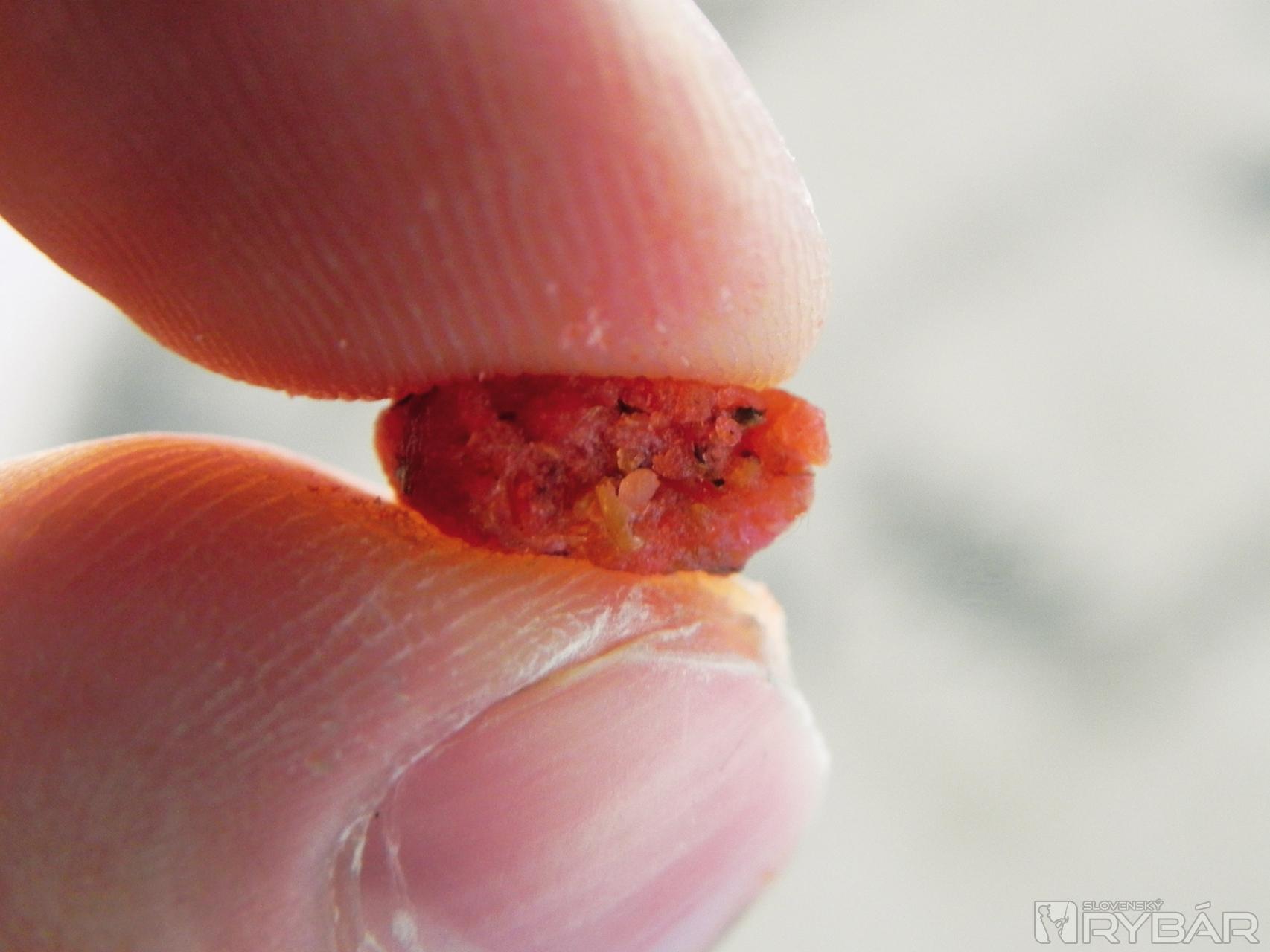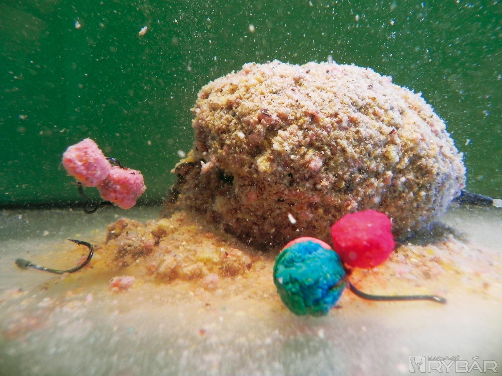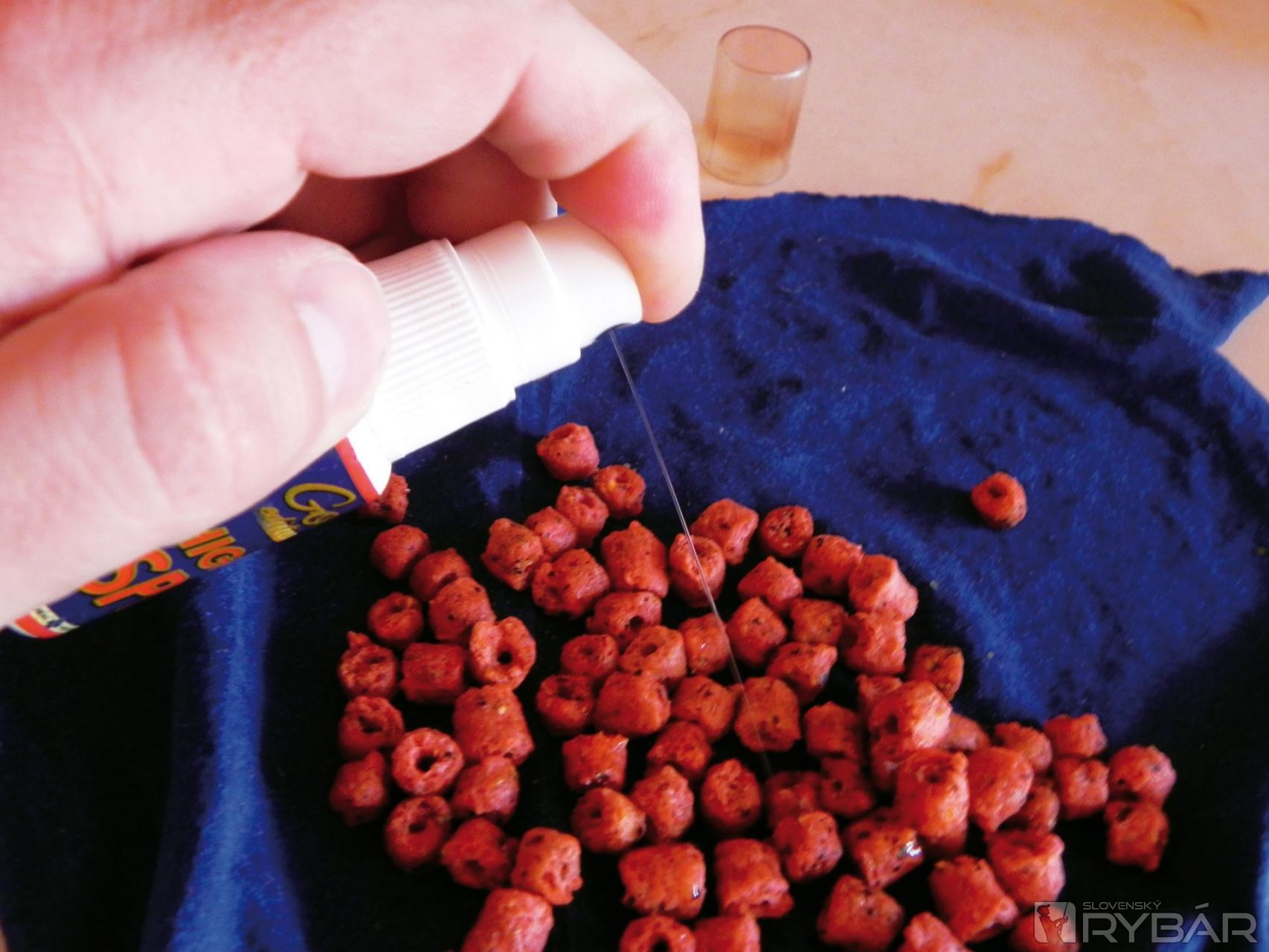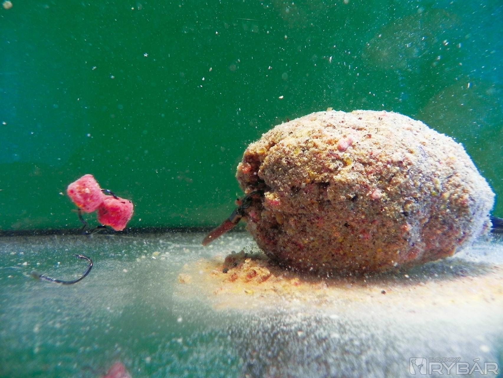 Po dvoch-troch hodinách som ich z handričky vybral a odložil do suchej nádobky, príliš veľa vlhka by mi z nich urobilo veľmi mäkké nástrahy a mohli by mi pri nahadzovaní odpadnúť. Túto nástrahu nedávam priamo na háčik, využívam to, že majú v strede dierku a navliekam dva kúsky na maggot klip. Pôvodne je určený na navliekanie živej nástrahy, ale je ho využívam po svojom. Vnadiaca zmes K1, do ktorej vmiešam Liquid Food – Krill, mi zabezpečí lákavý podklad na lovnom mieste.