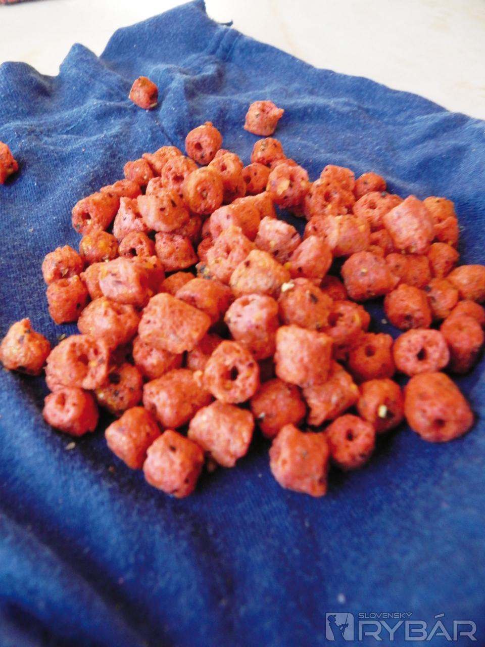 Ďalšia nástraha, ktorú netrpezlivo vyberám, je Super Pips jahodovej príchute, prenikavo vonia aj cez obal, ktorá mi určite prinesie pár záberov. Keďže mám rád špecialitky, mám túto nástrahu už dopredu troška upravenú. Večer som sa trochu pohral a pár týchto malých nástrah som zabalil do vlhkej handričky, pričom som ich ešte trochu nastriekal takou istou arómou.