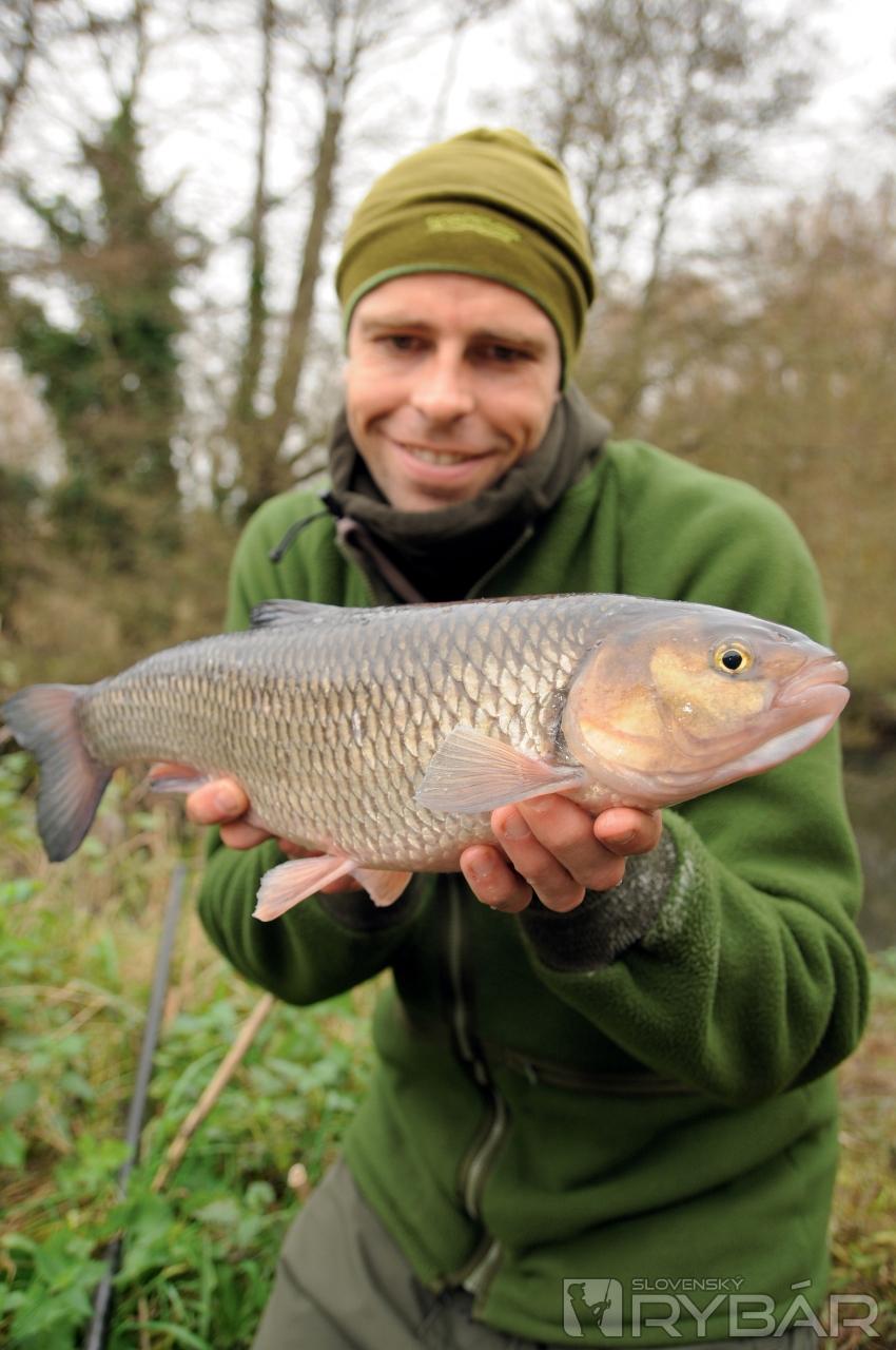 „Len tak si hútam, či nízky prietok rieky nebude mať vplyv na množstvo rýb zdržiavajúcich sa na tomto mieste.” Pozrel som sa na rieku a skutočne nevyzerala najlepšie za tohto stavu, keď bol prúd naozaj veľmi slabý. „Aj napriek tomu im dám trochu času a uvidíme, či sú nejaké jalce doma, pretože tam, kde je prekážka, sa obvykle zdržiavajú aj jalce.” Kým sme čakali, Dean mi opísal meander rieky a prekážky, ktoré sa v nich nachádzajú. Vraj sa tam zdržiavajú krásne mreny. Po malom obede nastal čas niečo zmeniť. Dean sa rozhodol použiť zostavu s plavákom, ak sme chceli chytiť nejakého jalca počas dňa. Zišli sme nižšie pomedzi jelše lemujúce breh rieky a Dean prekŕmil kostnými červami, pokiaľ si pripravil novú zostavu. Najprv na vlasec navliekol zopár gumených zarážok, do nich upevnil malý štíhly plavák (brko) a dovážil ho tak, aby čnel len červený konček.