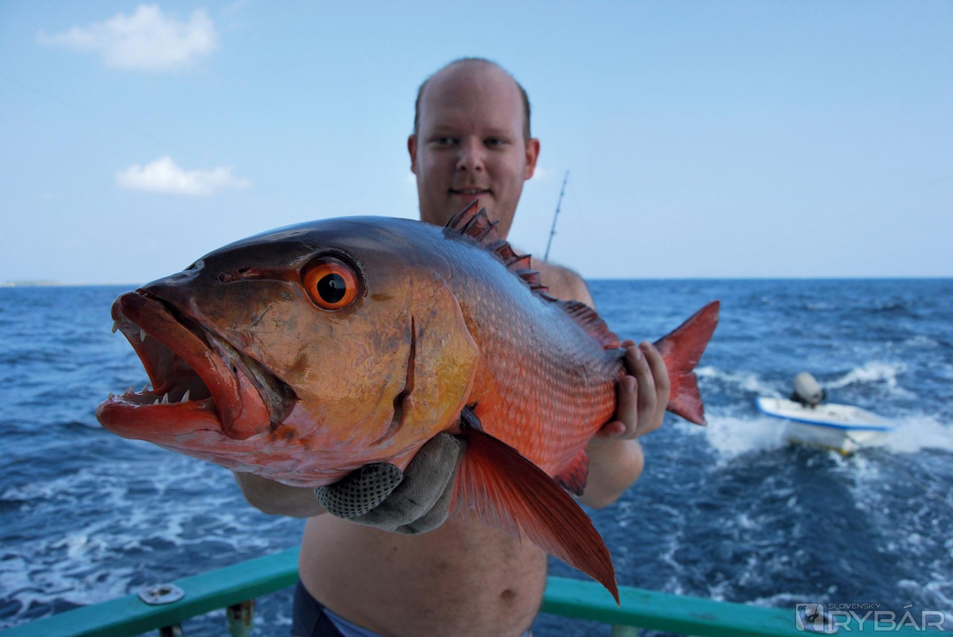 Hodina a pol cez šíry oceán a my sme už druhý deň bez záberu na naše ťahané chobotnice a voblery. Chytaniu na trolling sa nám vôbec nedarí, a preto som veľmi rád, keď som uvidel obrysy ostrova črtajúceho sa na horizonte. Loď sa pomaly blíži ku koralovej bariére a chalani už zaujali svoje obvyklé posty. Paľo s Rasťom ml. rozkročení v bojovom postoji na streche lode a Peťo s otcom na prove. Tentoraz som neodolal a nachádzam si na prednej palube i ja svoj rybársky flek, aby som skúsil prechytať miesta, na ktorých som doposiaľ nikdy nebol. Môj poper rozprskuje doširoka vodu a ja po očku hľadím na Petrovu nástrahu, ktorá mi je v pätách. Po chvíli sa pri nej zvíri voda a Petrov poper mizne z hladiny presne v tom momente, keď za veľkého šplechnutia zaútočila ryba i na moju nástrahu. „Peter, zdvihni udicu vyššie,“ kričím na priateľa, ktorý je na streche, ale nemá šancu čokoľvek urobiť, lebo pánom na ihrisku sa stala ryba na konci jeho udice.